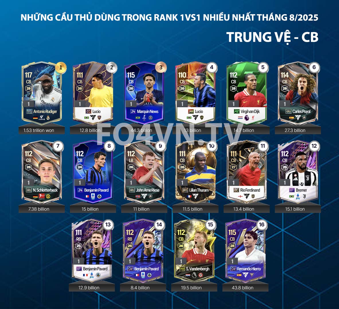 Trong FC Online, mỗi vị trí trên sân đều có vai trò riêng biệt, tạo nên sự cân bằng giữa tấn công và phòng ngự. Trung vệ (CB) là lá chắn thép trước khung thành, chịu trách nhiệm ngăn chặn các pha tấn công của đối thủ bằng khả năng đọc tình huống, tranh chấp và không chiến.