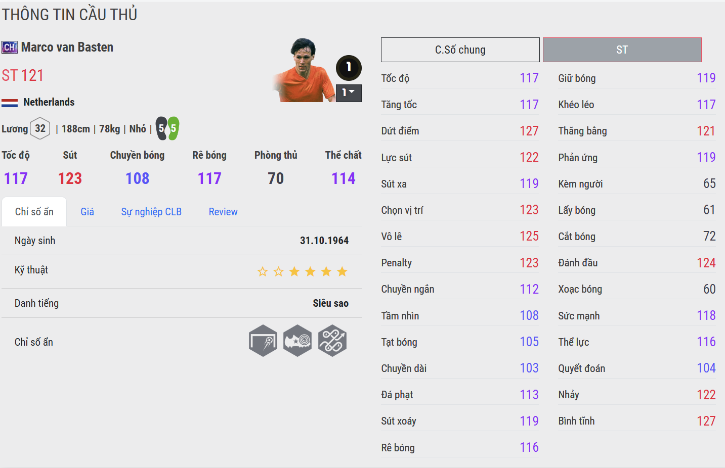 CH: Vượt trội hơn hẳn. Không chỉ giữ được sự bén trong vòng cấm, Van Basten CH còn cải thiện lực sút, độ ổn định và sự đa dạng trong cách ghi bàn. Đây là phiên bản thể hiện đúng hình ảnh “sát thủ vòng cấm” nhưng hiện đại hơn.