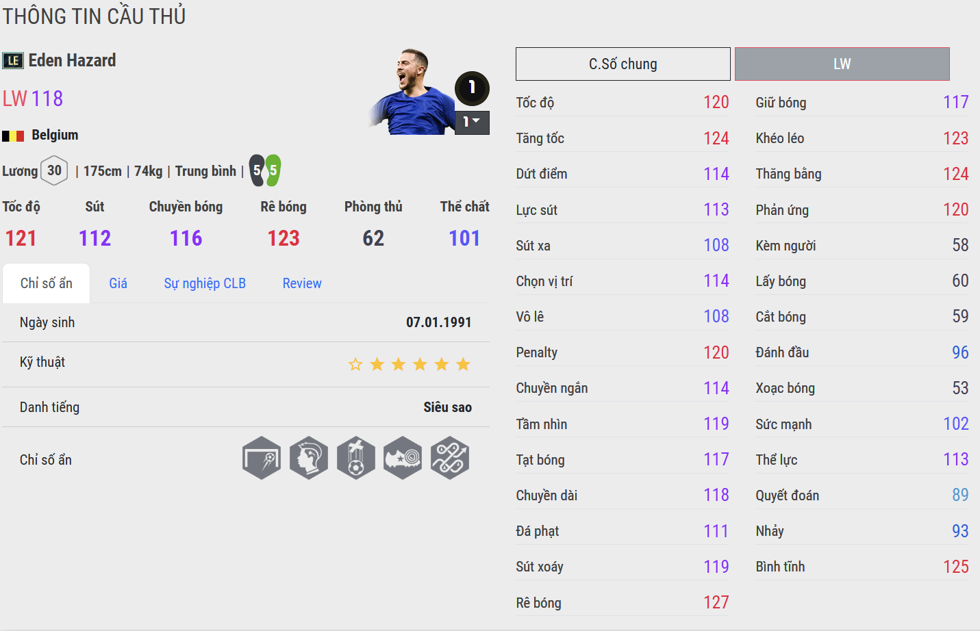 Ở khâu kết thúc, LE thể hiện sự sắc bén với khả năng sút bóng chuẩn xác từ nhiều góc độ, đặc biệt là những cú đặt lòng finesse shot đặc trưng. 25HR cải thiện lực sút và khả năng dứt điểm bằng chân không thuận, giúp Hazard đa dạng hơn khi đối mặt thủ môn.