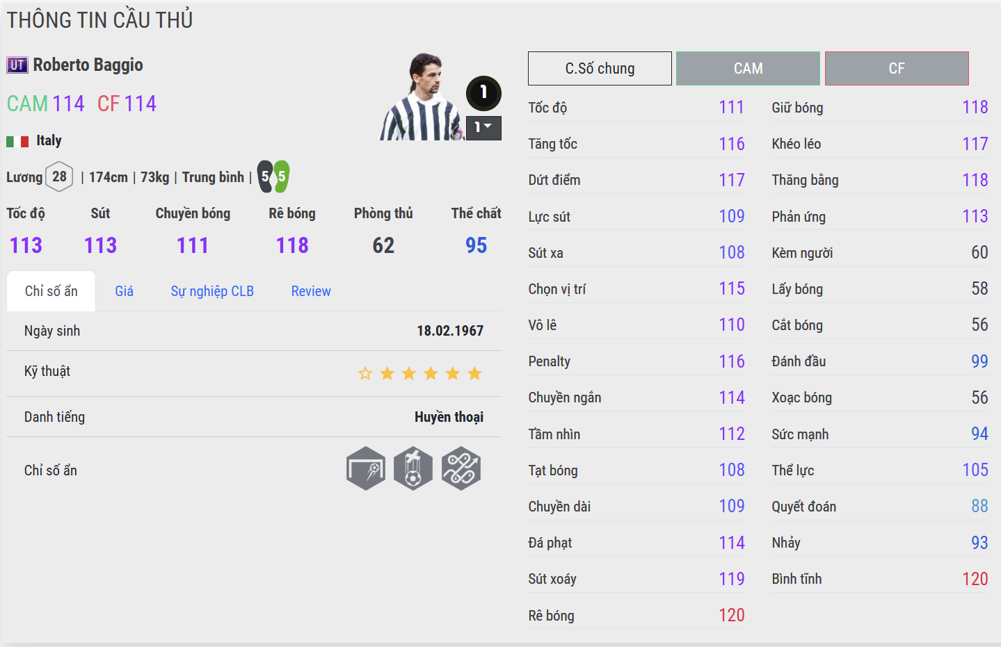 Baggio UT mang phong cách của một “ảo thuật gia sân cỏ” – người có thể biến điều đơn giản thành phi thường. Anh sở hữu cảm giác bóng mượt mà, rê dắt mềm mại cùng khả năng dứt điểm đầy ngẫu hứng. Baggio UT là lựa chọn hoàn hảo cho những HLV yêu thích sự sáng tạo và lối đá giàu cảm xúc.