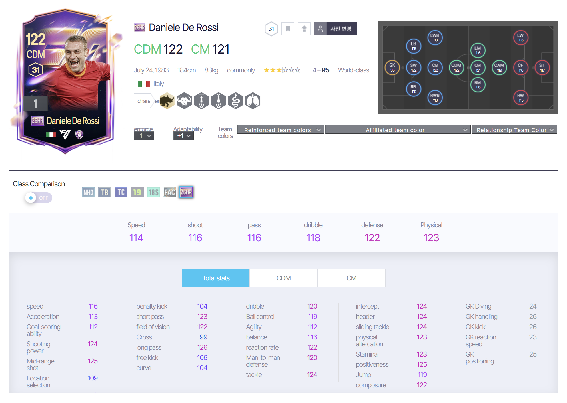 Ở tuyến giữa, De Rossi mang đến chất thép với khả năng tranh chấp, đánh chặn và điều tiết nhịp độ trận đấu. Trong khi đó, Quaresma là điểm nhấn nghệ thuật với những pha xử lý ngẫu hứng, kỹ thuật và đầy đột biến bên hành lang cánh.