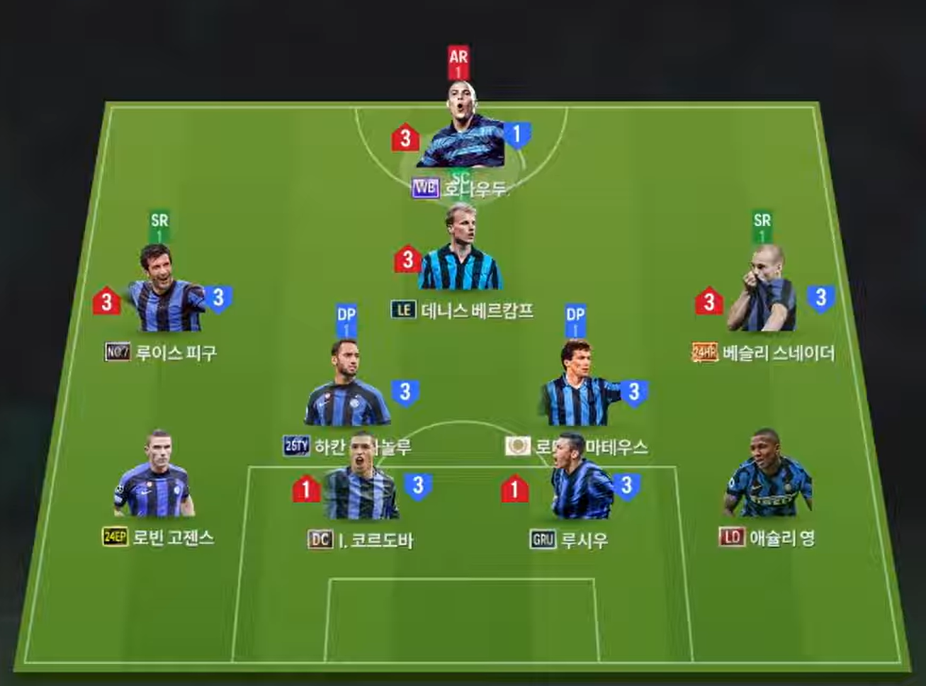 Sơ đồ 42211 được lựa chọn với Ronaldo Nazario là cái tên được tin dùng ở nơi cao nhất trên hàng công, cầu thủ người Brazil cho thấy tốc độ, khả năng di chuyển thông minh, kỹ năng rê dắt chất lượng cho tới ghi bàn tốt bằng cả 2 chân. Hỗ trợ phía sau là Bergkamp, cầu thủ người Hà Lan đang được xem là quốc dân ở vai trò tiền vệ công khi sở hữu tốc độ, khả năng sút xa tốt, kỹ năng di chuyển và phối hợp rất khôn.