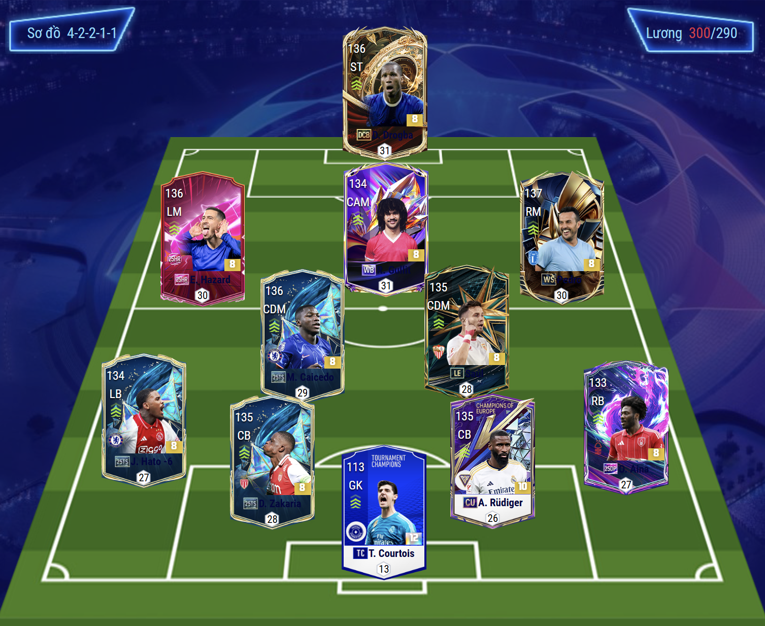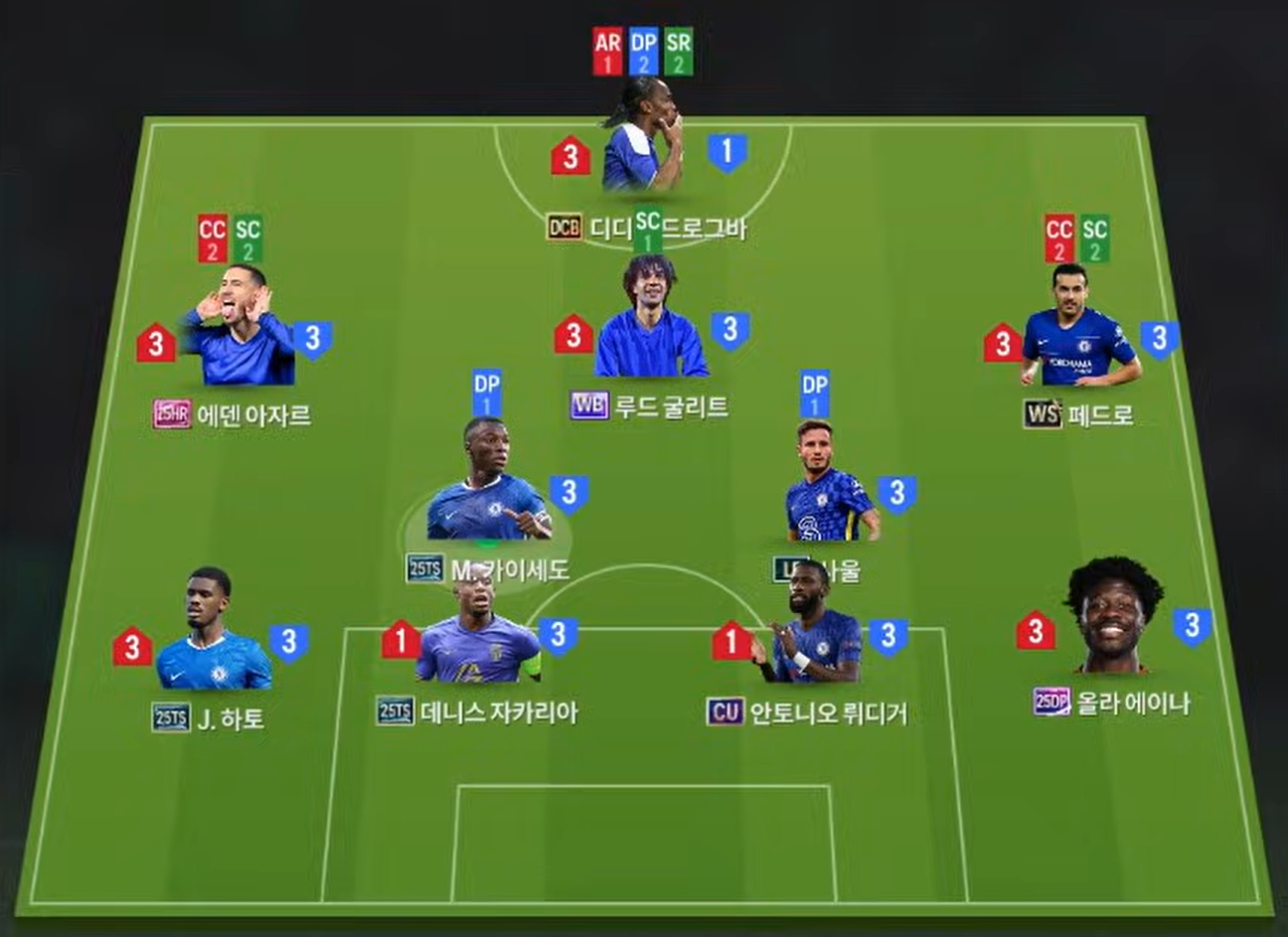 Sơ đồ chiến thuật được lựa chọn là sơ đồ 42211 với vị trí tiền đạo cắm là Drogba, cầu thủ sở hữu kỹ năng dứt điểm chuẩn xác và uy lực cùng bộ kỹ năng không chiến và tranh chấp trên không ấn tượng. Hỗ trợ phía sau là Gulllit cho vị trí tiền vệ tấn công có tốc độ, khả năng chuyền bóng và sút xa hiệu quả cùng khả năng tạo đột biến từ những tình huống tranh chấp và xử lý bóng tốt.