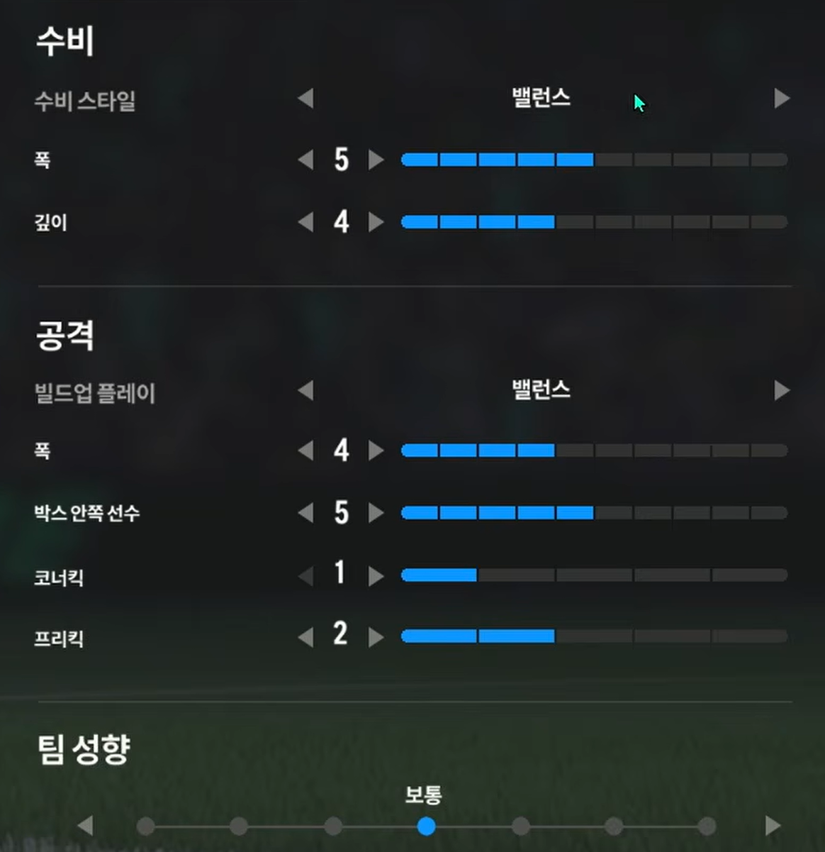 Trong khi, thiết lập tấn công "cân bằng" sẽ phù hợp cho lối chơi kiểm soát bóng, triển khai thế trận chậm, chắc ở tuyến giữa và ban bật với các vệ tinh trên hàng công để mở ra khoảng trống và ghi bàn. Ở lối chơi tấn công này, xu hướng triển khai sẽ là xu hướng chậm, chắc bóng và tìm kiếm cơ hội thay vì tấn công tổng lực và tốc độ cao.