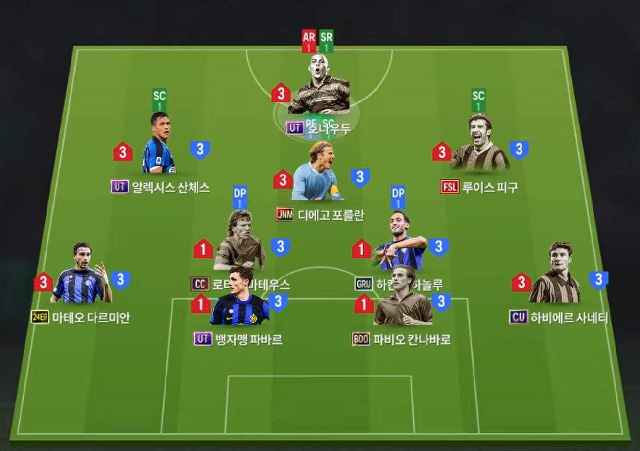 Tiền vệ phòng ngự với Matthaus và Calhanoglu là những cái tên chất lượng cho vị trí trung tâm khi cả 2 đều sở hữu tốc độ ổn, khả năng chuyền bóng tốt cho đến kỹ năng sút xa tuyến 2 đều chất lượng, ngoài ra khả năng hỗ trợ phòng ngự cũng rất hiệu quả. Bộ tứ vệ với Darmian và Zanetti được tin dùng ở 2 cánh nhờ khả năng phòng ngự lẫn hỗ trợ tấn công khá đa năng. Cặp trung vệ Pavard và Cannavaro đều là những mẫu cầu thủ tốc độ, có AI cắt bóng tốt đem lại hiệu quả nổi bật. Thủ môn Radu là cái tên được tin dùng trong khung gỗ.