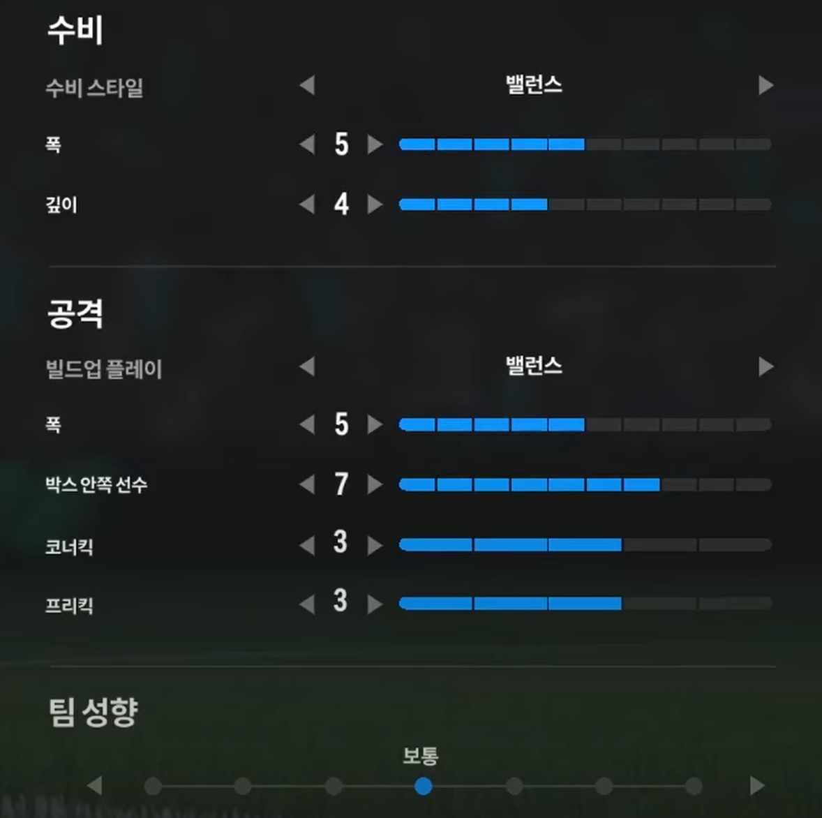 Trong khi, thiết lập tấn công "cân bằng" sẽ phù hợp cho lối chơi kiểm soát bóng, triển khai thế trận chậm, chắc ở tuyến giữa và ban bật với các vệ tinh trên hàng công để mở ra khoảng trống và ghi bàn. Ở lối chơi tấn công này, xu hướng triển khai sẽ là xu hướng chậm, chắc bóng và tìm kiếm cơ hội thay vì tấn công tổng lực và tốc độ cao.