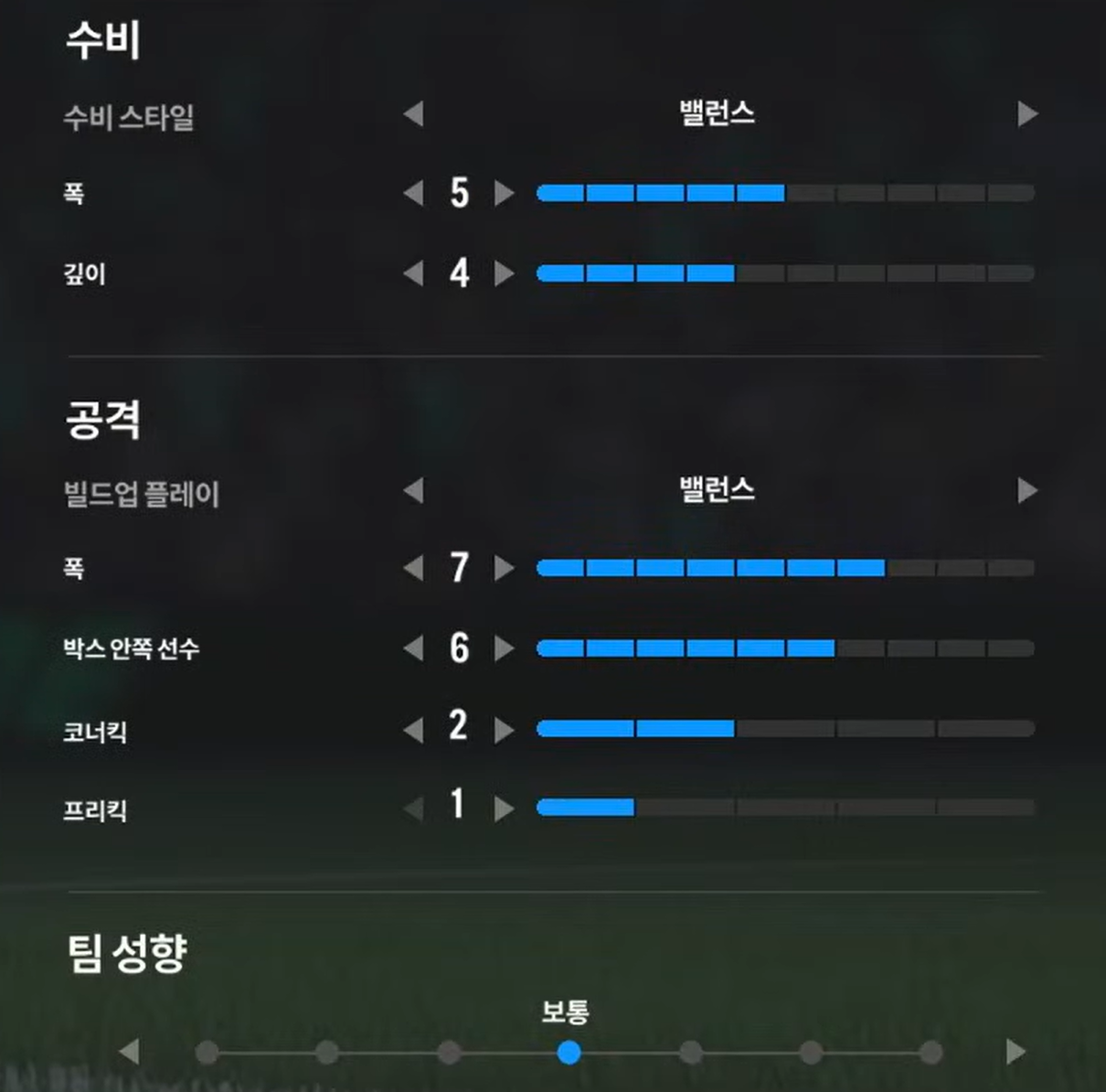 Trong khi, thiết lập tấn công "cân bằng" sẽ phù hợp cho lối chơi kiểm soát bóng, triển khai thế trận chậm, chắc ở tuyến giữa và ban bật với các vệ tinh trên hàng công để mở ra khoảng trống và ghi bàn. Ở lối chơi tấn công này, xu hướng triển khai sẽ là xu hướng chậm, chắc bóng và tìm kiếm cơ hội thay vì tấn công tổng lực và tốc độ cao.