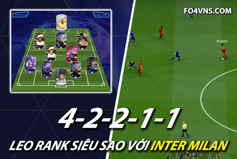 Sơ đồ 42211 được lựa chọn cho team color Inter Milan với tiền đạo cắm Ronaldo Nazario là cái tên khá toàn diện thời điểm hiện tại về khả năng chơi bóng từ dứt điểm nổi bật bằng cả 2 chân, tốc độ tốt, rê dắt linh hoạt và AI chọn vị trí thông minh. Hỗ trợ phía sau là Barella ở vai trò tiền vệ tấn công, cầu thủ người Ý khá đa năng với tốc độ tốt, khả năng chuyền bóng và hỗ trợ tấn công cực kì linh hoạt.
