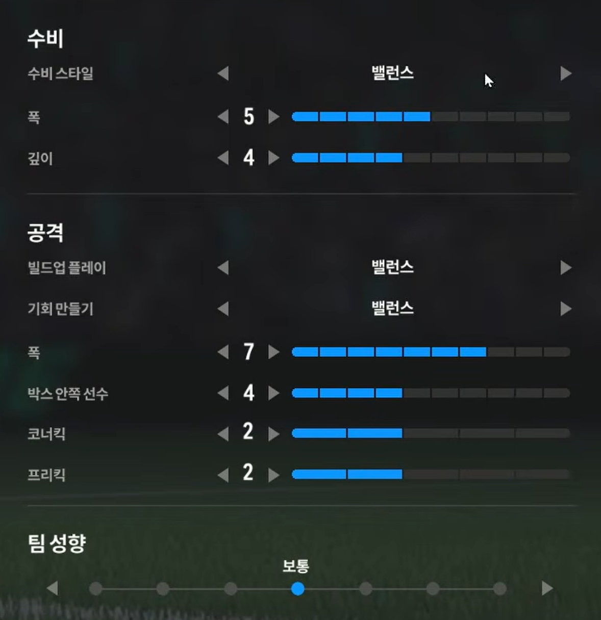Ở mục tấn công, thiết lập “Cân bằng” mang lại nhịp độ triển khai ổn định và có kiểm soát. Các tiền đạo giữ vị trí tốt, chỉ xâm nhập vòng cấm khi xuất hiện khoảng trống rõ ràng, trong khi tuyến tiền vệ tấn công dâng cao hợp lý để phối hợp ngắn, tạo liên kết giữa các tuyến. Đồng thời, những phương án tấn công biên cũng được tận dụng hiệu quả với các pha bứt tốc, chồng biên và tạt bóng từ cả tiền vệ lẫn hậu vệ cánh.