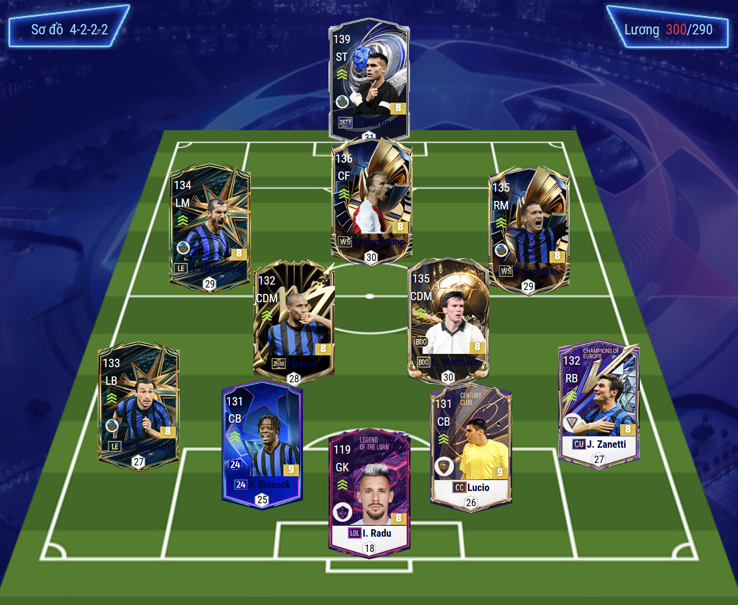 Sơ đồ 4222 ST/CF là sơ đồ được lựa chọn với vị trí tiền đạo cắm là Lautaro Martinez, một trong những mẫu tiền đạo linh hoạt, nhanh nhẹn cùng khả năng dứt điểm sắc bén bằng cả 2 chân. Hỗ trợ phía sau là tiền đạo hộ công Bergkamp ,một trong những cái tên quốc dân đáng dùng vì sự nhạy bén trong khả năng tạo ra cơ hội và ghi bàn. Cặp tiền vệ cánh Mkhitaryan và Zielinski sở hữu 2 chân 5 sao, khả năng chuyền tạt cho tới sút bóng cực tốt khi thi đấu ở hành lang biên giúp tạo ra nhiều tình huống tấn công đa dạng và hiệu quả.