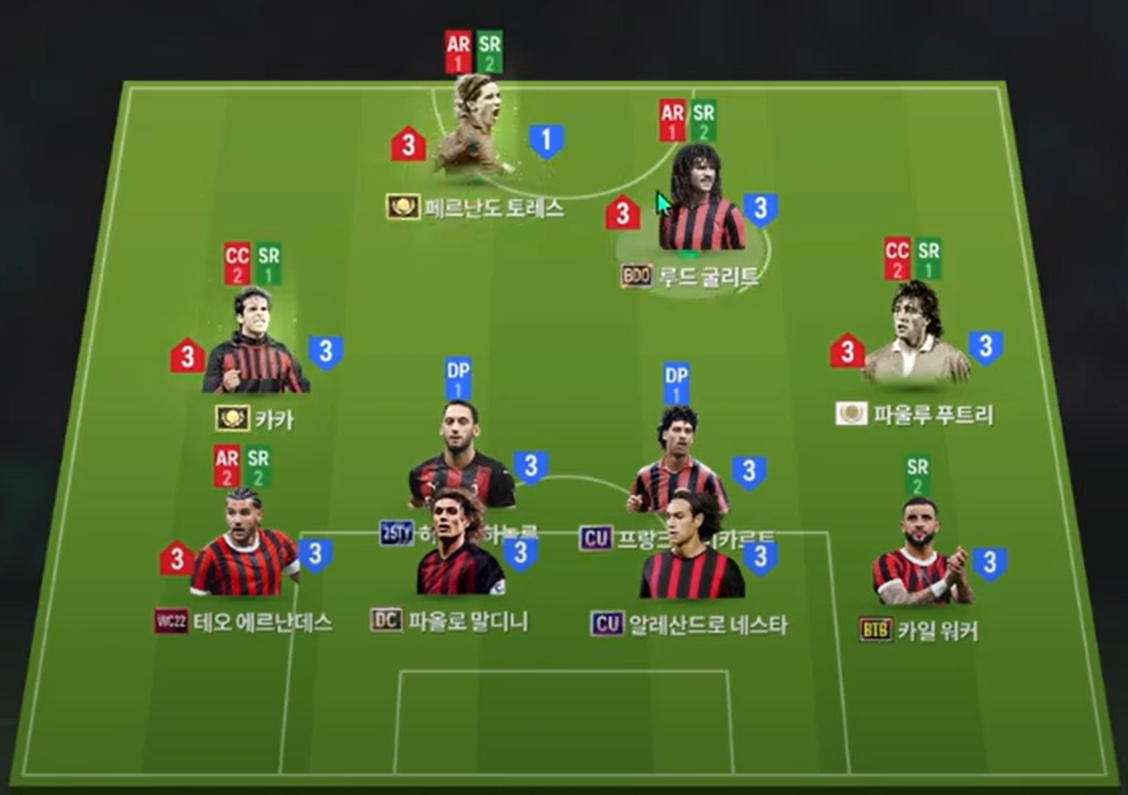 Cặp tiền vệ cánh là Kaka và Futre, cả 2 sở hữu tốc độ, kỹ năng chuyền tạt tốt cùng khả năng xâm nhập biên và dứt điểm cũng rất hiệu quả. Cặp tiền vệ phòng ngự với Calhanoglu và Rijkaard sở hữu khả năng chuyền bóng, sút xa đều hiệu quả. Không những vậy, kỹ năng phòng ngự tốt cũng giúp đội hình tạo ra hiệu quả ấn tượng.
