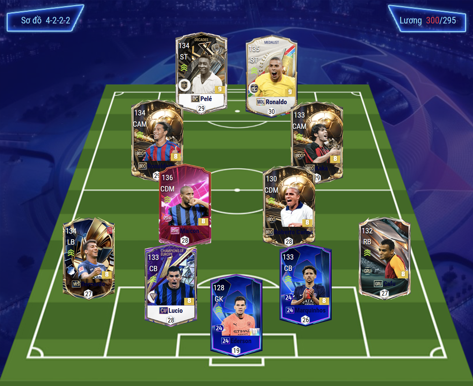 Bộ tứ vệ với Bernardo và Cafu thi đấu ở 2 bên hành lang cánh có khả năng phòng ngự tốt, đeo bám biên hiệu quả cho tới đâng cao hỗ trợ tấn công tạt bóng chuyền bóng nổi bật. Cặp trung vệ Lucio và Marquinhos sở hữu tốc độ tốt, khả năng xoay sở phòng ngự cắt bóng linh hoạt cho tới hỗ trợ không chiến cũng cực kì ổn. Thủ môn Ederson là cái tên được tin dùng trong khung gỗ.