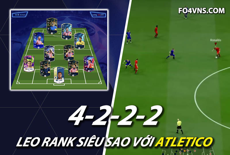 Sơ đồ 4222 ST/CF là sơ đồ được lựa chọn cho team color Atletico với vị trí tiền đạo cắm ST là Fernando Torres, phía sau là tiền đạo hộ công Alvarez, cả 2 đều là những tiền đạo có tốc độ tốt, AI di chuyển thông minh cùng khả năng dứt điểm cực kì sắc bén cả bằng 2 chân lẫn không chiến.