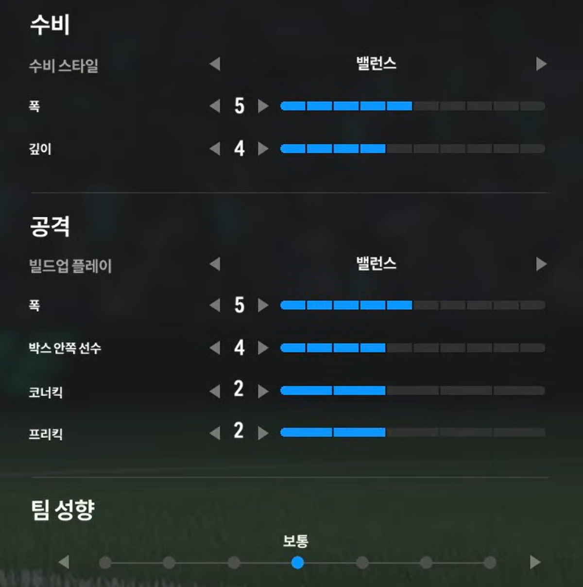 Trong khi, thiết lập tấn công "cân bằng" sẽ phù hợp cho lối chơi kiểm soát bóng, triển khai thế trận chậm, chắc ở tuyến giữa và ban bật với các vệ tinh trên hàng công để mở ra khoảng trống và ghi bàn. Ở lối chơi tấn công này, xu hướng triển khai sẽ là xu hướng chậm, chắc bóng và tìm kiếm cơ hội thay vì tấn công tổng lực và tốc độ cao.