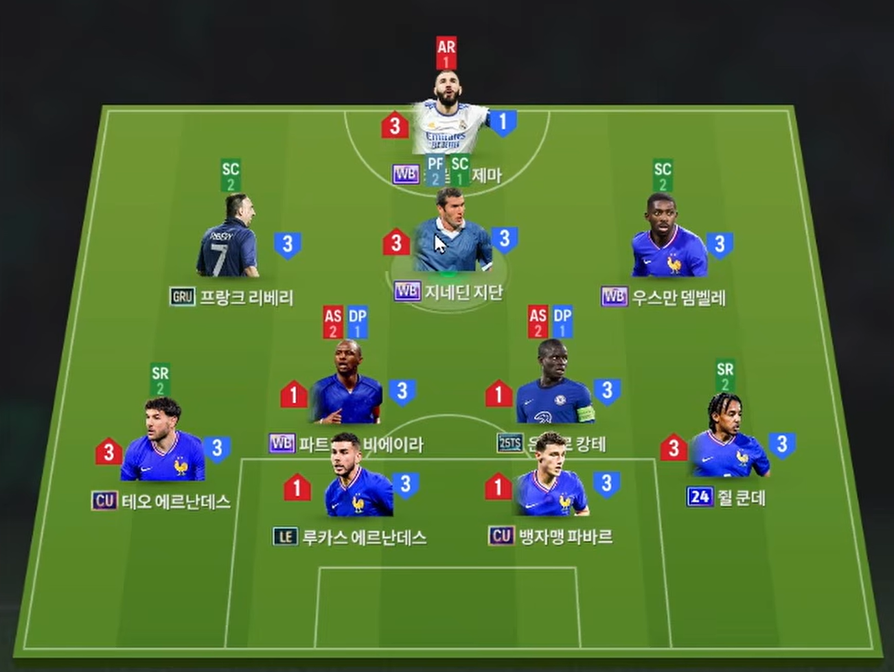Tiền vệ phòng ngự Vieira và Kante có tốc độ ổn, khả năng tranh chấp nổi bật, hỗ trợ phòng ngự lẫn khả năng dâng cao phối hợp tấn công đều ổn. Bộ tứ vệ với Theo Hernandez và Kounde thi đấu dọc 2 hành lang biên có tốc độ tốt, khả năng tranh chấp cắt bóng hiệu quả cho tới hỗ trợ tấn công đều ở mức ổn. Trung vệ Lucas Hernandez và Pavard là những cái tên cực kì linh hoạt, sở hữu tốc độ và khả năng tranh chấp cắt bóng nổi trội. Thủ môn Lloris là cái tên được tin dùng trong khung gỗ.