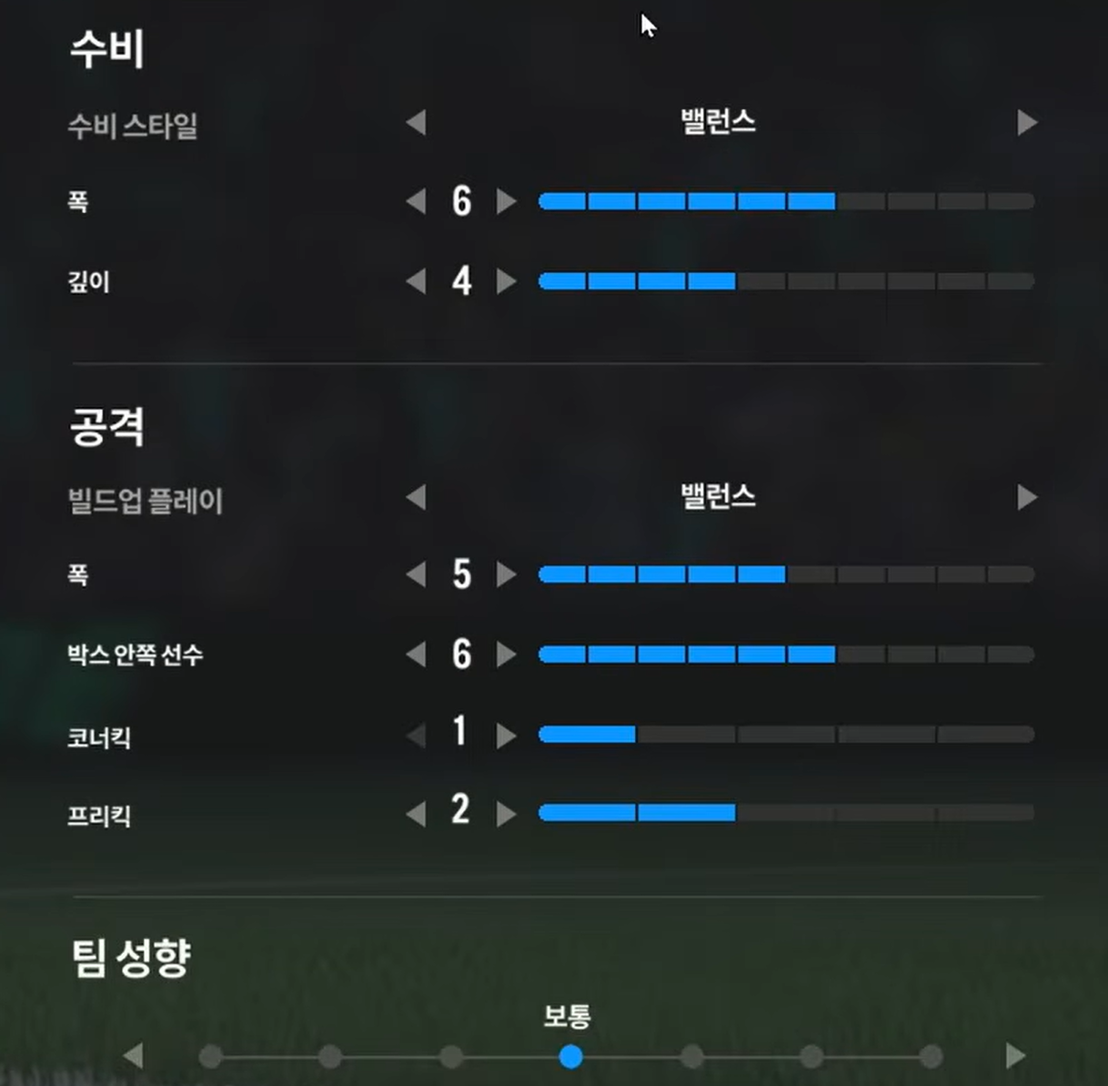 Trong khi, thiết lập tấn công "cân bằng" sẽ phù hợp cho lối chơi kiểm soát bóng, triển khai thế trận chậm, chắc ở tuyến giữa và ban bật với các vệ tinh trên hàng công để mở ra khoảng trống và ghi bàn. Ở lối chơi tấn công này, xu hướng triển khai sẽ là xu hướng chậm, chắc bóng và tìm kiếm cơ hội thay vì tấn công tổng lực và tốc độ cao.