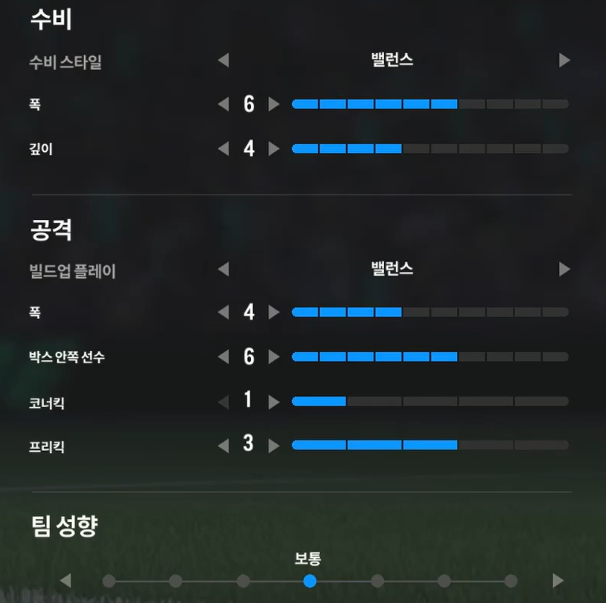 Trong khi, thiết lập tấn công "cân bằng" sẽ phù hợp cho lối chơi kiểm soát bóng, triển khai thế trận chậm, chắc ở tuyến giữa và ban bật với các vệ tinh trên hàng công để mở ra khoảng trống và ghi bàn. Ở lối chơi tấn công này, xu hướng triển khai sẽ là xu hướng chậm, chắc bóng và tìm kiếm cơ hội thay vì tấn công tổng lực và tốc độ cao.