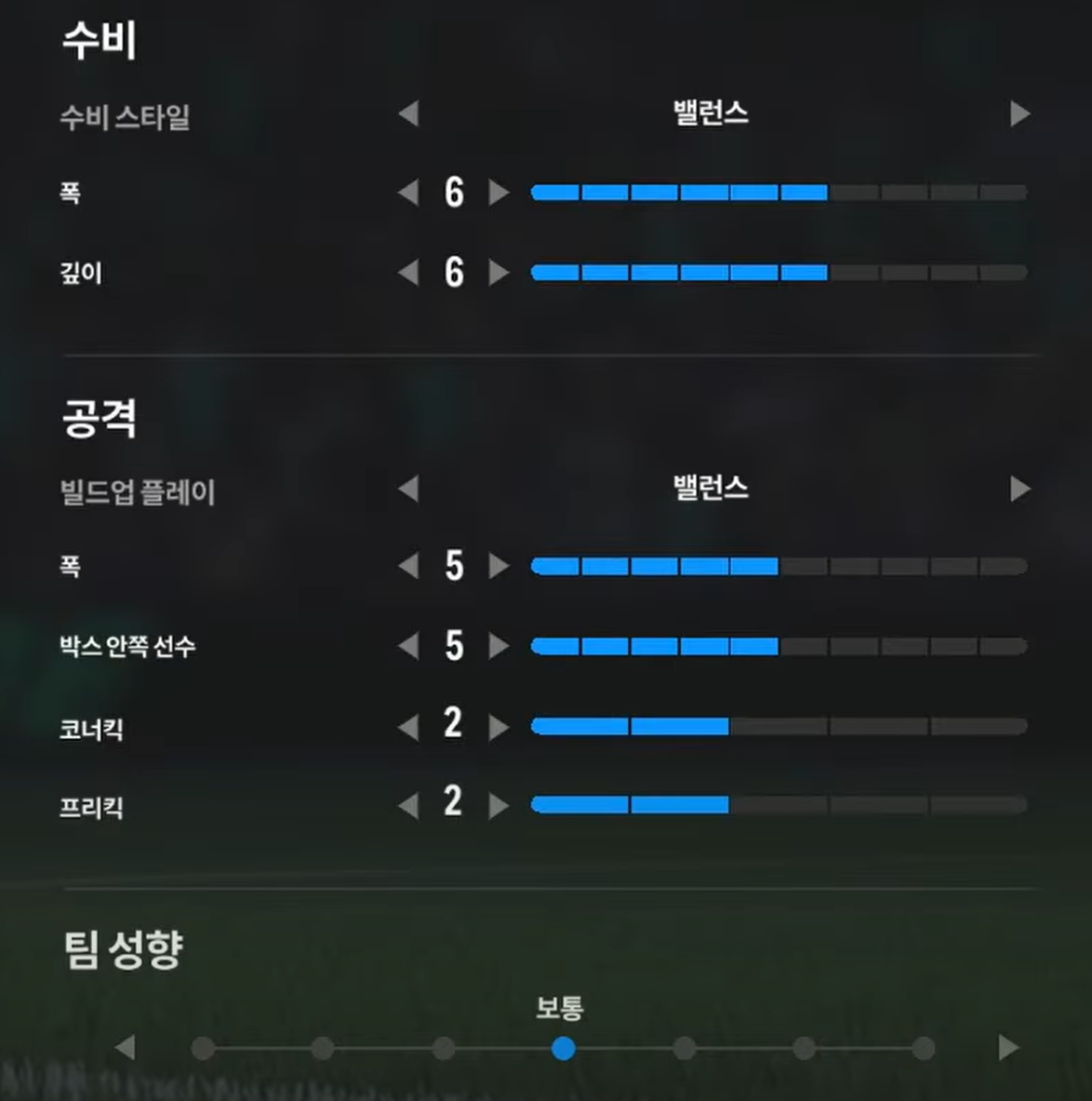 Trong khi, thiết lập tấn công "cân bằng" sẽ phù hợp cho lối chơi kiểm soát bóng, triển khai thế trận chậm, chắc ở tuyến giữa và ban bật với các vệ tinh trên hàng công để mở ra khoảng trống và ghi bàn. Ở lối chơi tấn công này, xu hướng triển khai sẽ là xu hướng chậm, chắc bóng và tìm kiếm cơ hội thay vì tấn công tổng lực và tốc độ cao.