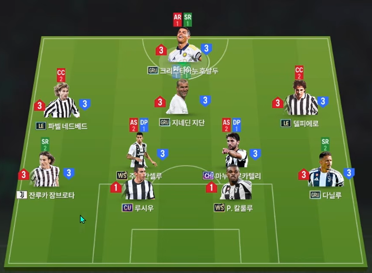 Tiền vệ cánh là cặp đôi Nedved và Del Piero, cả 2 là những mẫu tiền vệ quốc dân bên hành lang cánh sở hữu tốc độ, khả năng chuyền tạt lẫn dứt điểm tốt bằng cả 2 chân cùng kỹ năng rê dắt ấn tượng. Tiền vệ trung tâm Cancelo và Locatelli là những cái tên đa năng, đảm bảo tốt khả năng hỗ trợ phòng ngự, cầm nhịp tuyến giữa và luân chuyển bóng.