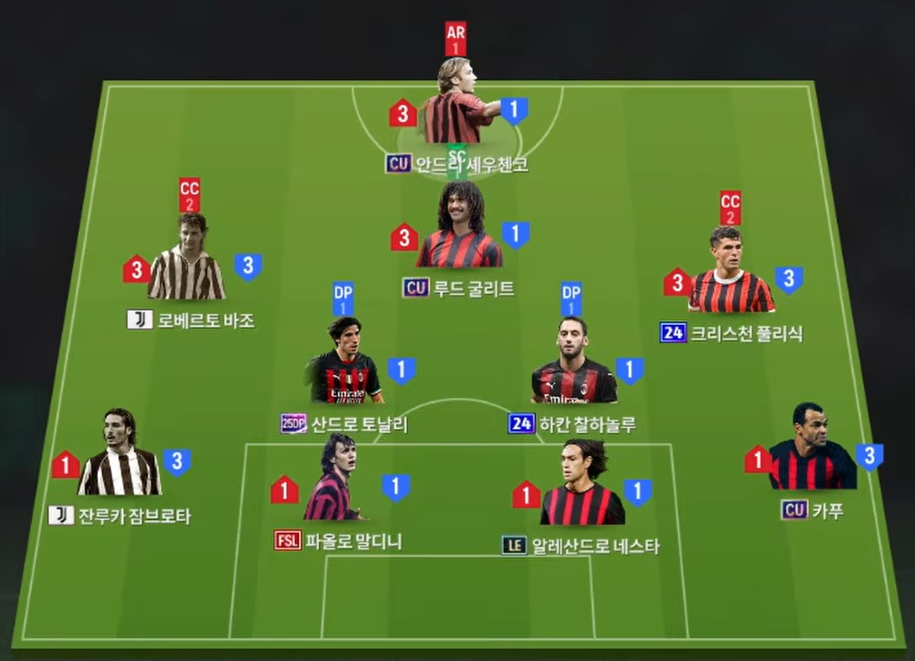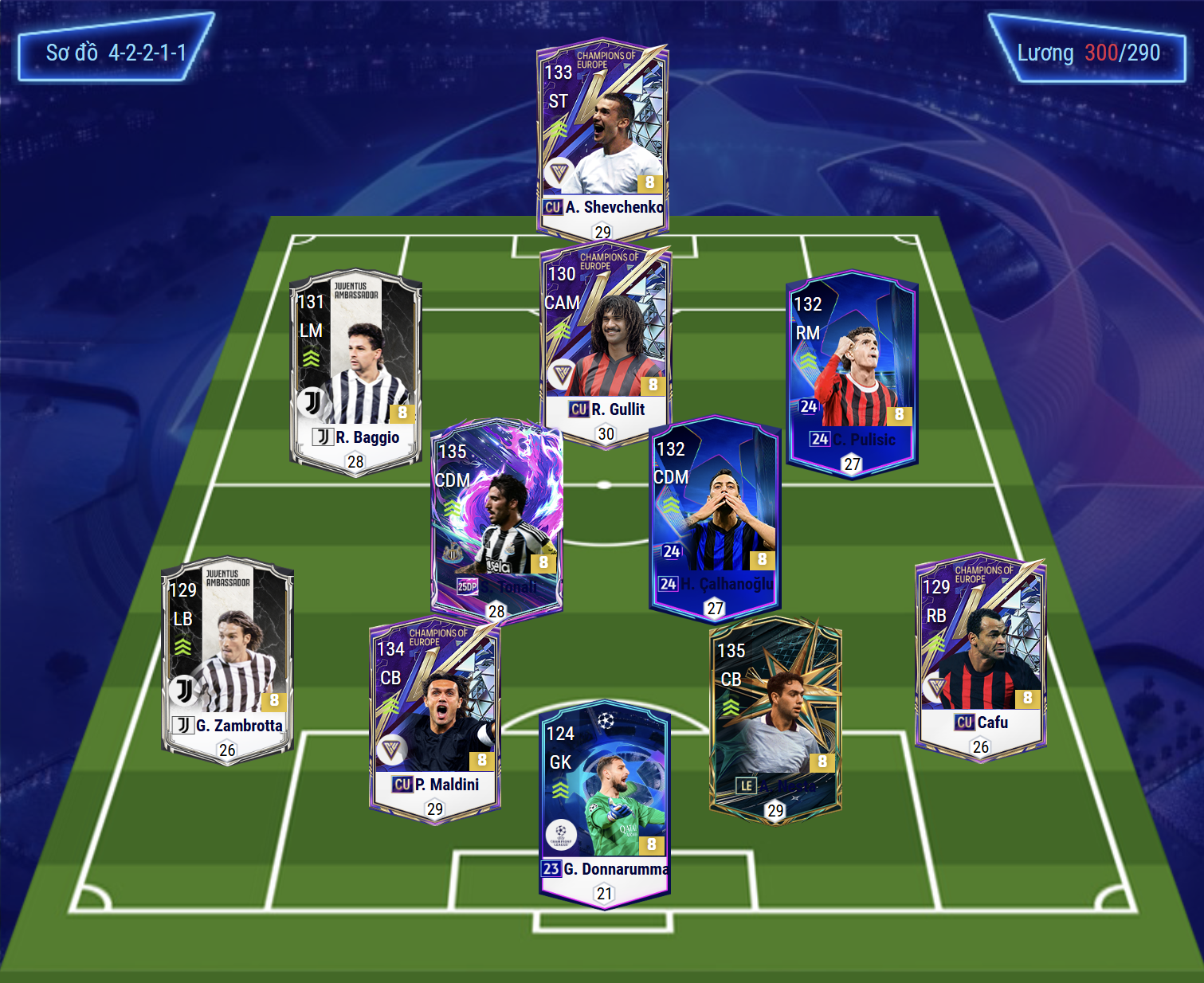 Sơ đồ 42211 được lựa chọn với vị trí tiền đạo cắm là Shevchenko, cầu thủ sở hữu tốc độ tốt, khả năng dứt điểm đa dạng bằng cả 2 chân cùng khả năng xử lý bóng rất ổn. Hỗ trợ phía sau là Gullit với vị trí CAM, một trong những cái tên quốc dân khá toàn diện trên hàng công và có thể tạo nên đột biến.