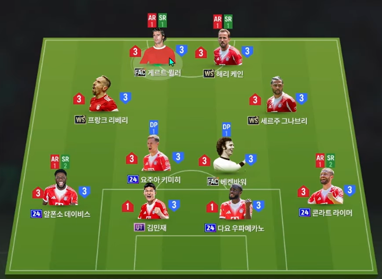 Tiền vệ phòng ngự với Kimmich và Beckenbauer là những mẫu cầu thủ đa năng, vừa có khả năng chuyền bóng xuất sắc, vừa có AI hỗ trợ phòng ngự và sút xa hiệu quả. Bộ tứ vệ với Davies và Laimer thi đấu ở 2 bên hành lang biên sở hữu tốc độ, khả năng tranh chấp tốt cùng với đó là kỹ năng hỗ trợ tấn công hiệu quả. Cặp trung vệ Kim Min Jae và Upamecano là những cái tên có thể hình tốt, khả năng không chiến và tranh chấp trên không ấn tượng. Thủ môn Reina là cái tên được tin dùng trong khung gỗ.