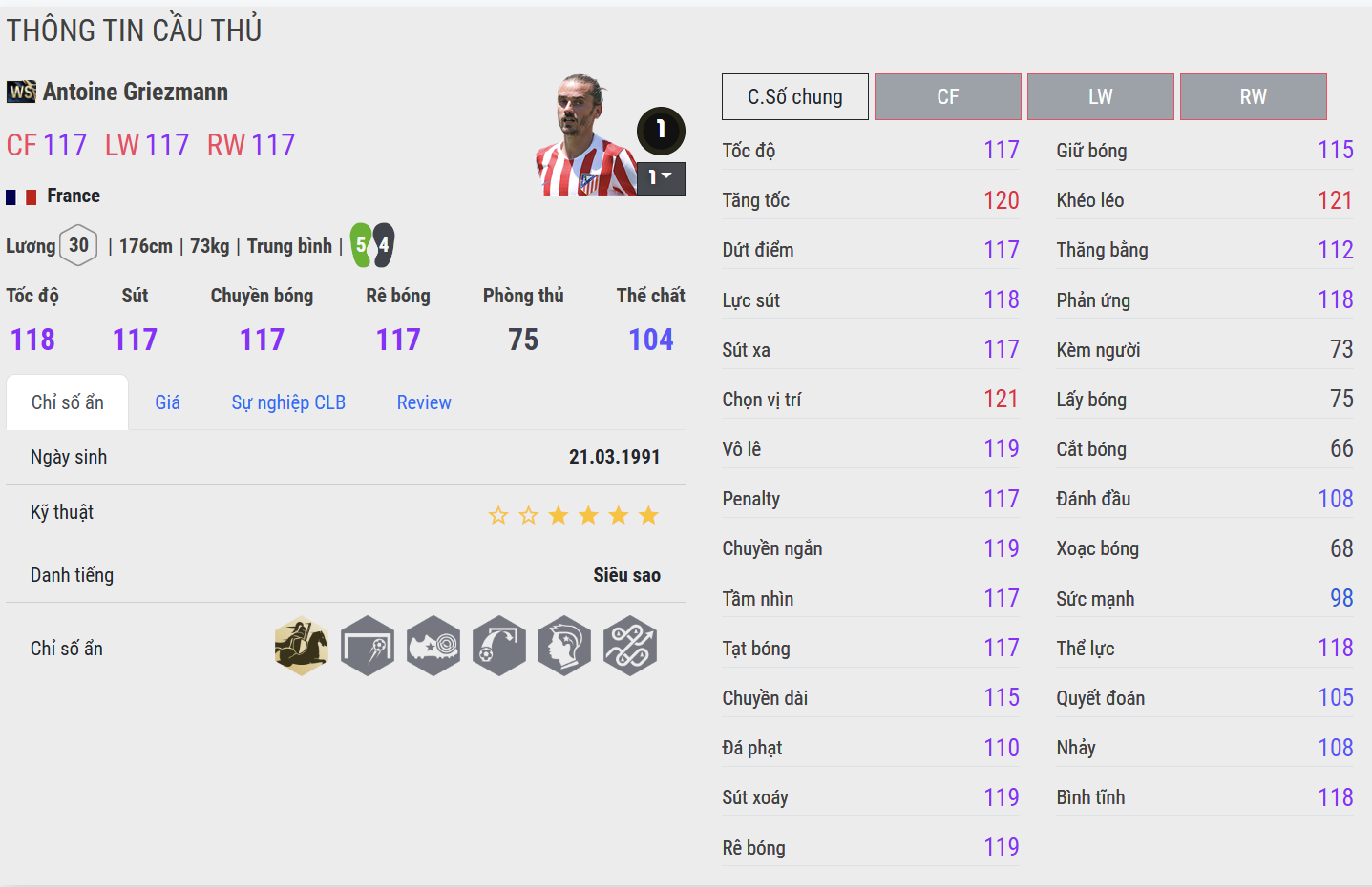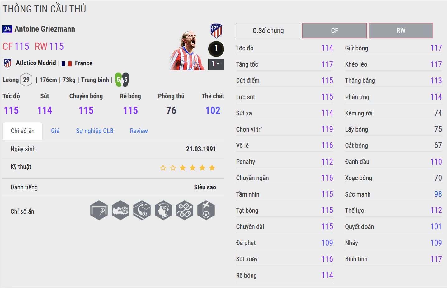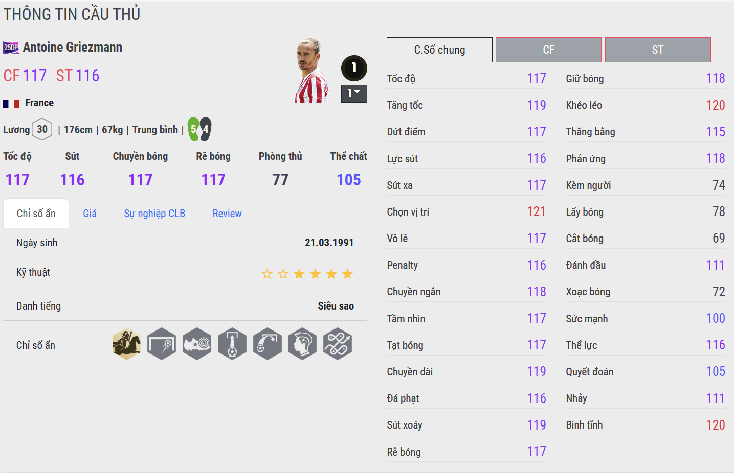 Griezmann WS sở hữu bộ chỉ số khá cân bằng giữa khả năng dứt điểm và chuyền bóng. Phiên bản này cho cảm giác chơi khá mượt khi hoạt động ở khu vực trước vòng cấm, đặc biệt là trong các pha phối hợp nhanh với tiền đạo cắm. Những pha dứt điểm trong vòng cấm của Griezmann WS cũng mang lại hiệu quả khá ổn định.