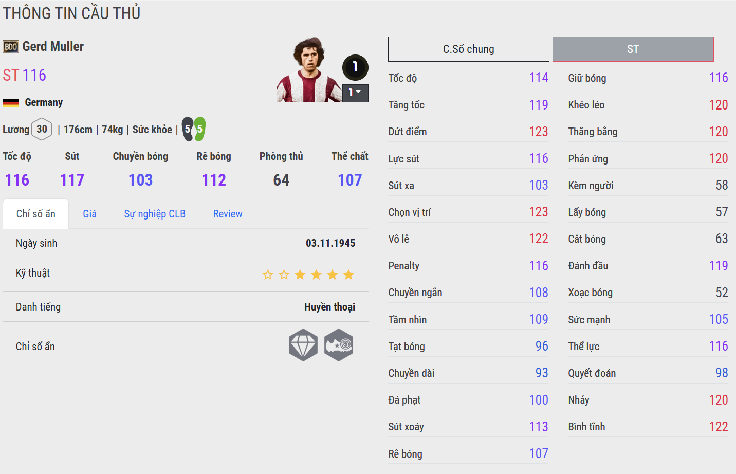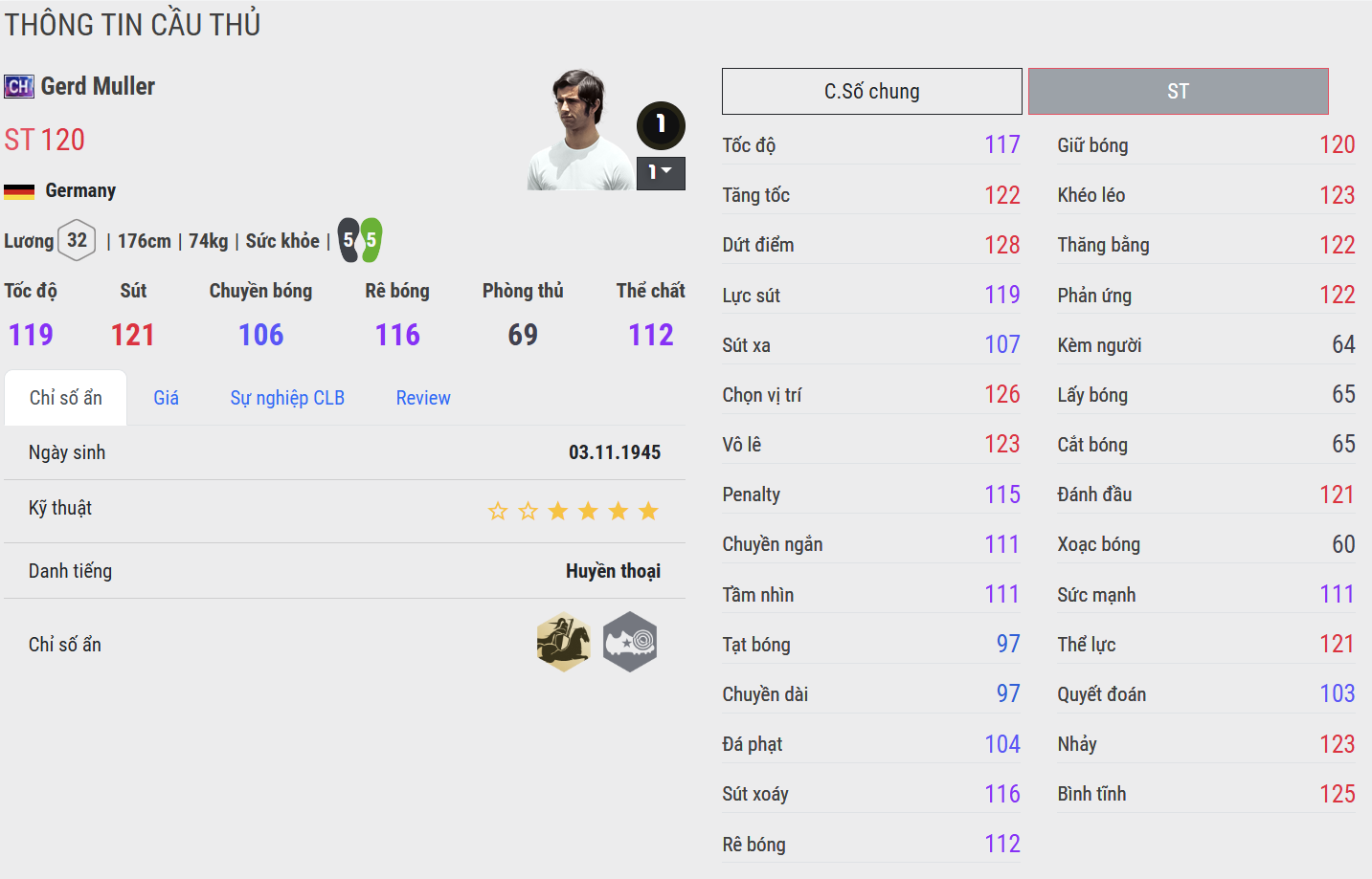 Ông chính là biểu tượng đưa Bayern vươn tầm châu Âu với 3 chức vô địch Cúp C1 liên tiếp trong thập niên 1970, đồng thời là nhân tố chủ chốt giúp Đức đăng quang EURO 1972 và World Cup 1974. Dù vóc dáng không cao lớn, nhưng sự tinh quái và lạnh lùng trong vòng cấm đã biến Müller thành nỗi ác mộng của mọi hàng thủ. Tên tuổi ông mãi mãi khắc sâu trong trái tim người hâm mộ như một tượng đài của nghệ thuật ghi bàn.