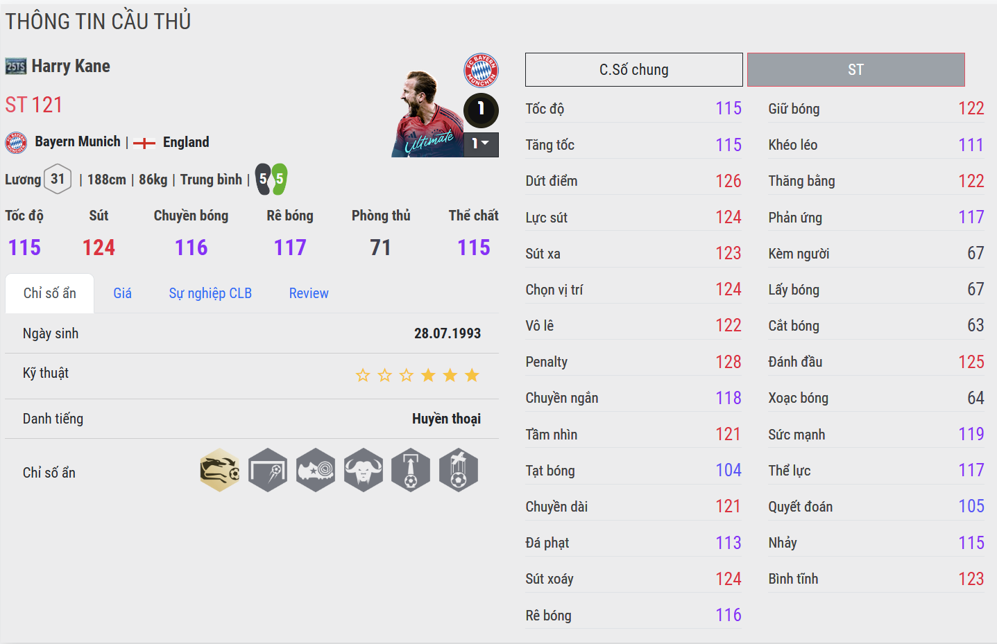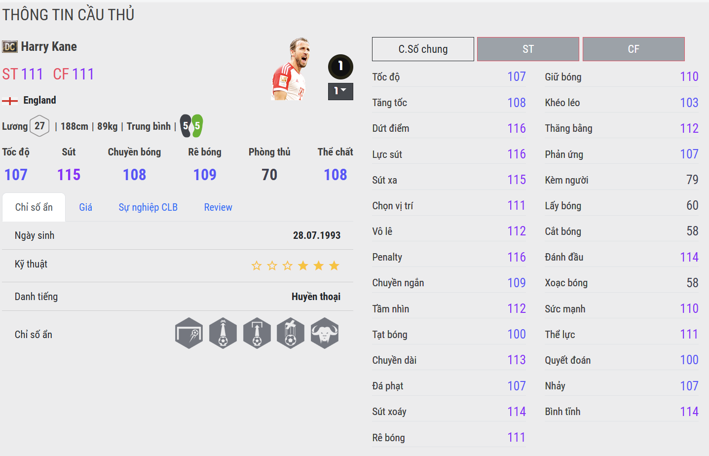 Phiên bản DC mang đến cảm giác dứt điểm chắc chắn và hiệu quả hơn trong thực chiến. Kane có thể tận dụng tốt những cơ hội trong vòng cấm với độ chính xác cao. Ngoài ra, khả năng giữ bóng và làm tường của phiên bản này cũng khá ấn tượng, giúp đội hình duy trì áp lực tấn công.