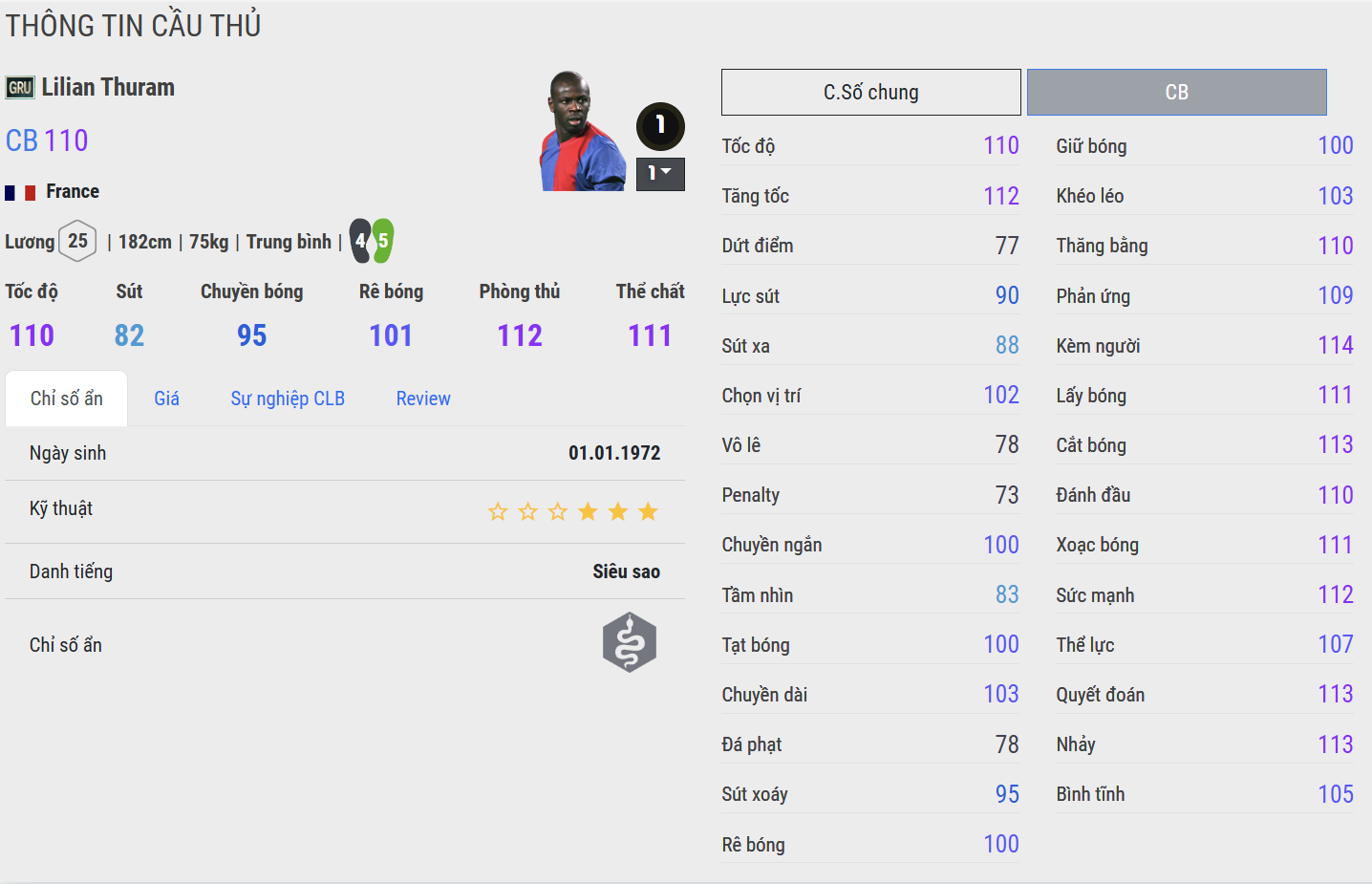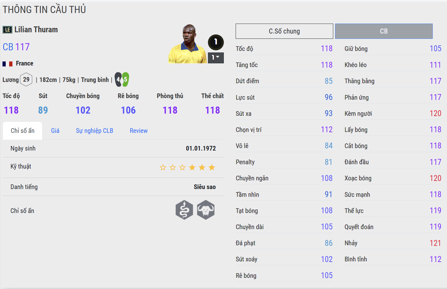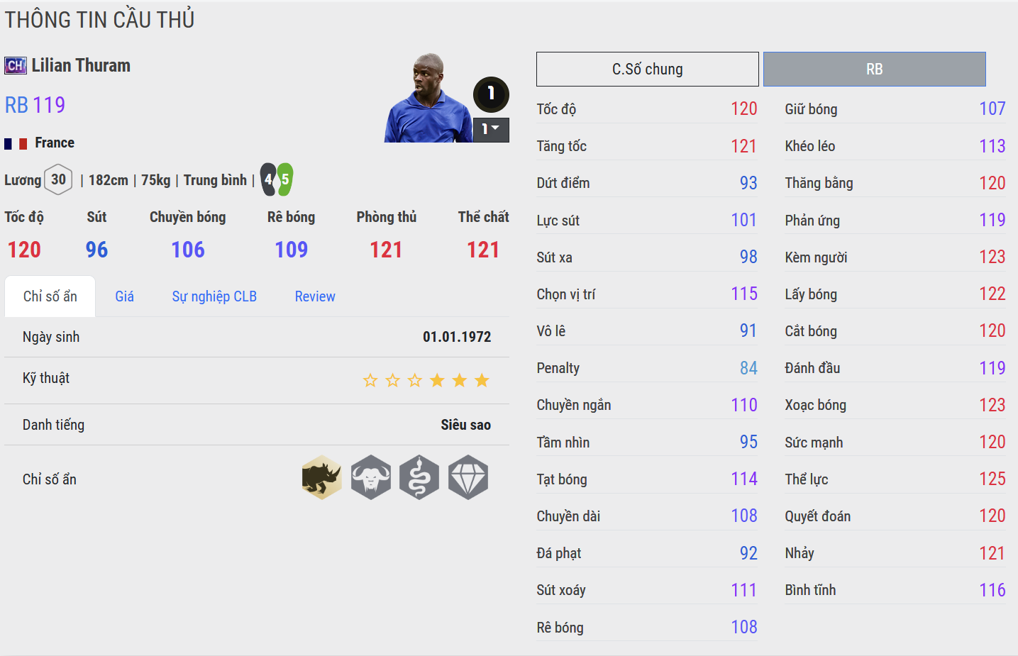 Lilian Thuram là một trong những hậu vệ vĩ đại nhất lịch sử bóng đá Pháp, biểu tượng của sự bền bỉ, đẳng cấp và tư duy phòng ngự đầy tinh tế. Ông được biết đến như mẫu cầu thủ mạnh mẽ nhưng cực kỳ thông minh, đọc tình huống sắc bén và luôn giữ được sự bình tĩnh trong những thời khắc áp lực nhất.