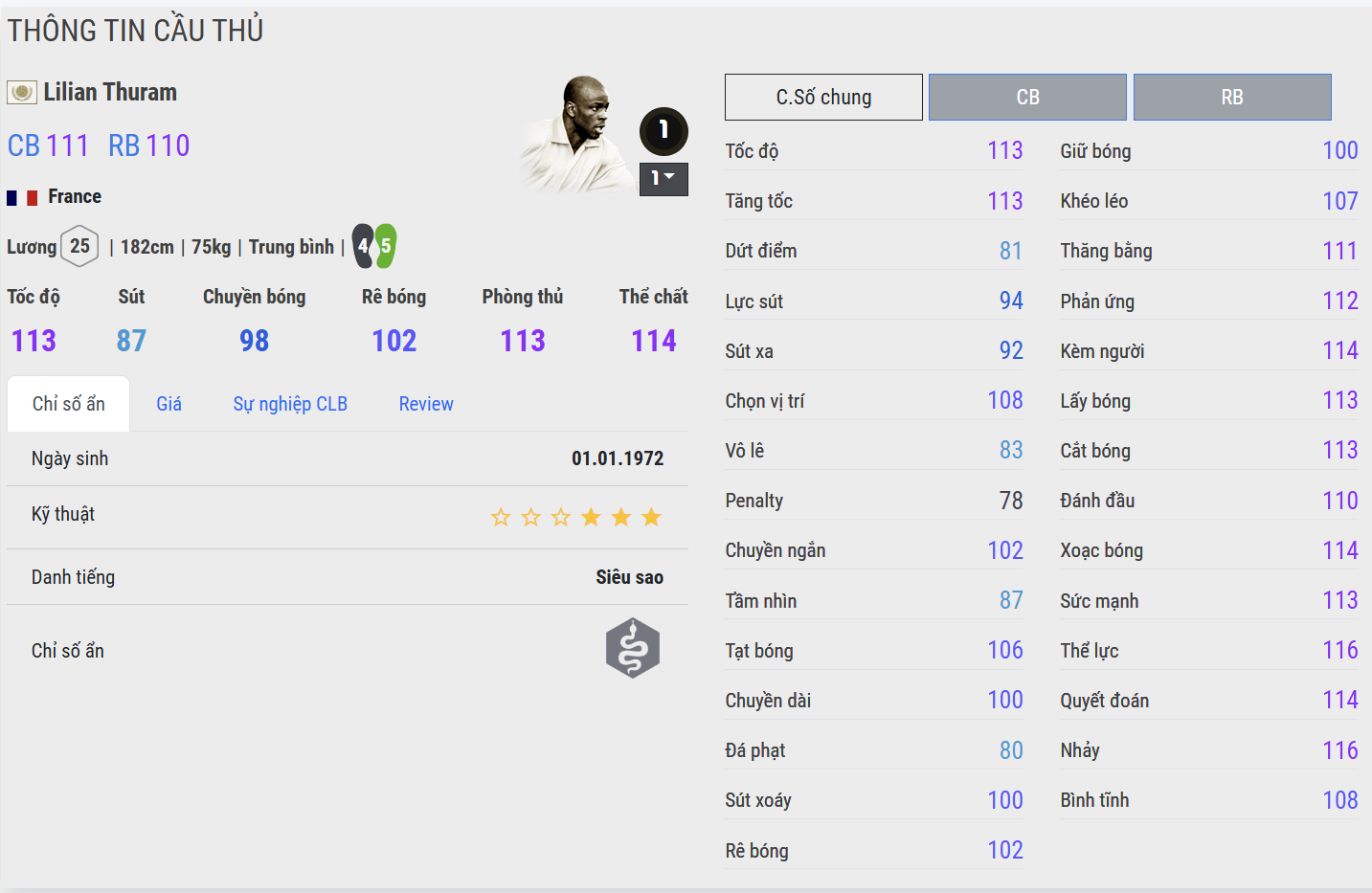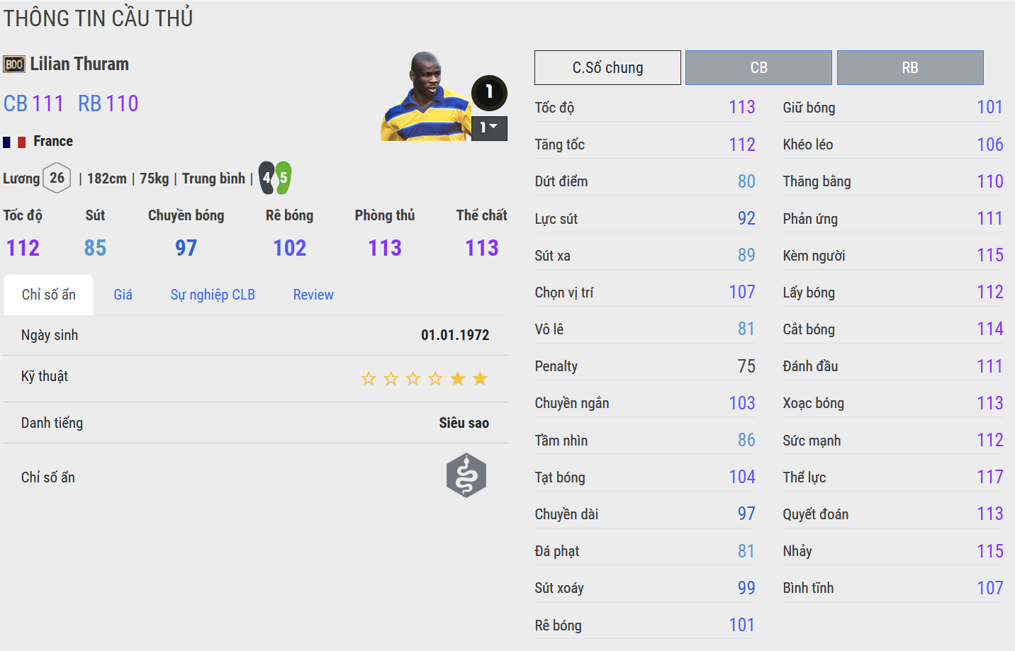 BDO là đỉnh cao của Thuram ở mức thẻ +8 trong FC Online: nhanh hơn, khỏe hơn, thông minh hơn và cực kỳ uy tín ở cả hai vị trí RB lẫn CB. Anh đọc tình huống xuất sắc, vào bóng dứt khoát nhưng sạch, xoay sở tốt ngay cả trong thế bị áp lực và rất khó bị vượt qua trong các pha 1v1. Đây là phiên bản tái hiện trọn vẹn nhất tinh thần “lá chắn thép” – sự kết hợp hoàn hảo giữa thể chất, AI, kỹ năng phòng ngự của huyền thoại phòng ngự người Pháp.