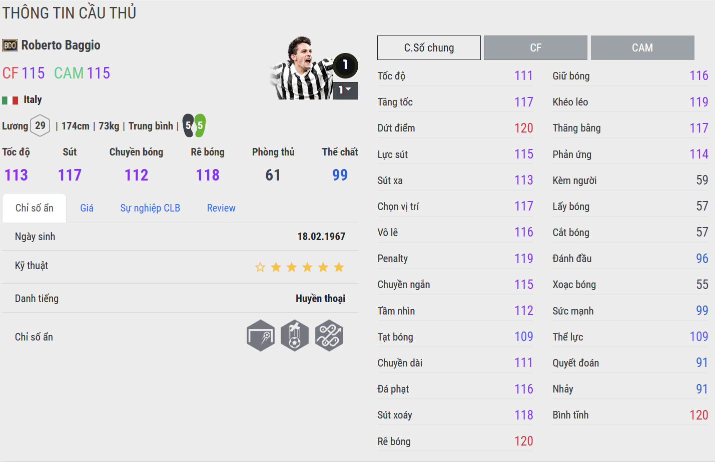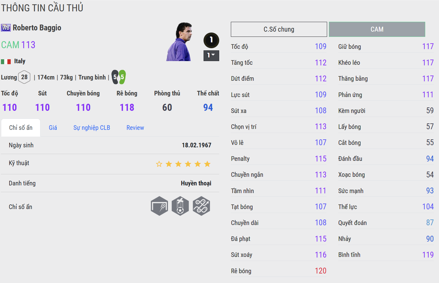 Dù khoảnh khắc đáng tiếc ở loạt luân lưu World Cup 1994 khiến nhiều người nuối tiếc, nhưng điều đó không thể phủ nhận vị thế huyền thoại của anh – một thiên tài sân cỏ với phong cách tinh tế, lãng mạn và đầy chất nghệ sĩ, khiến mỗi lần Baggio chạm bóng đều trở thành ký ức khó quên trong lịch sử bóng đá thế giới.