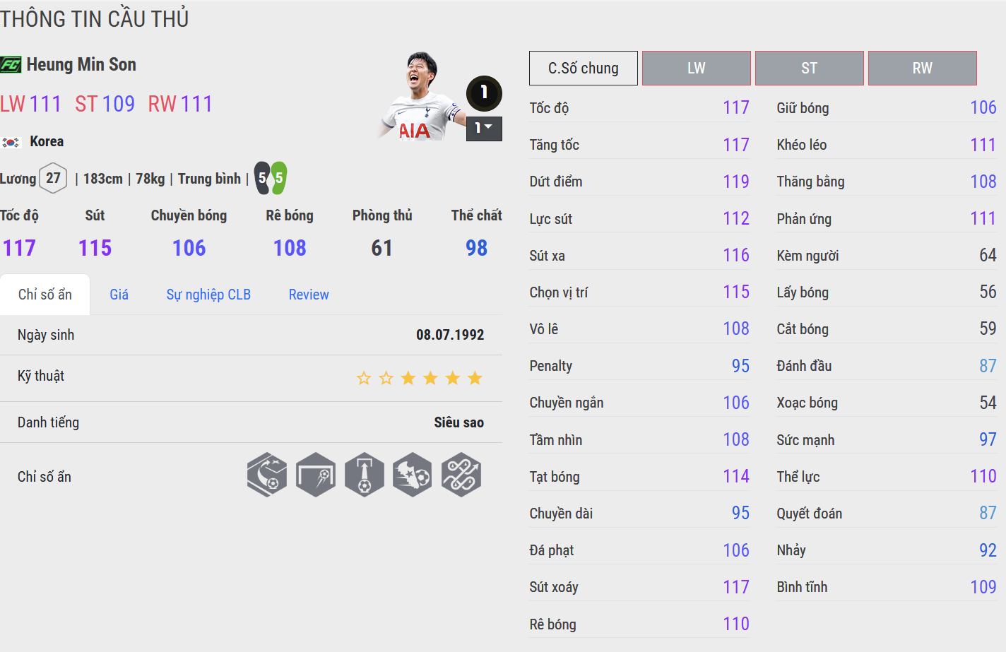 Son Heung-min – niềm tự hào của bóng đá Hàn Quốc và châu Á, được xem là một trong những cầu thủ toàn diện nhất thế giới hiện nay. Với tốc độ bùng nổ, kỹ thuật khéo léo và khả năng dứt điểm bằng cả hai chân, Son luôn là mũi công nguy hiểm có thể tạo ra khác biệt ở bất kỳ trận đấu nào.