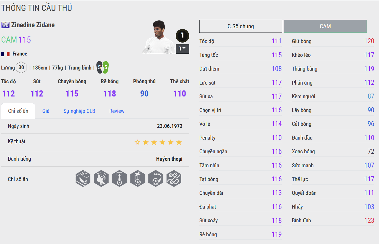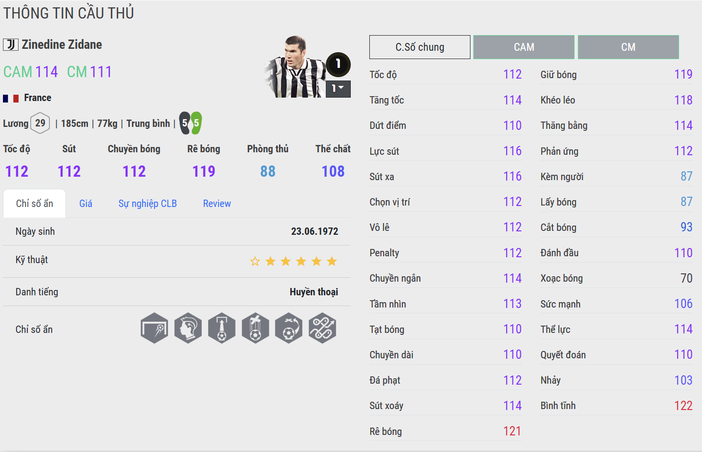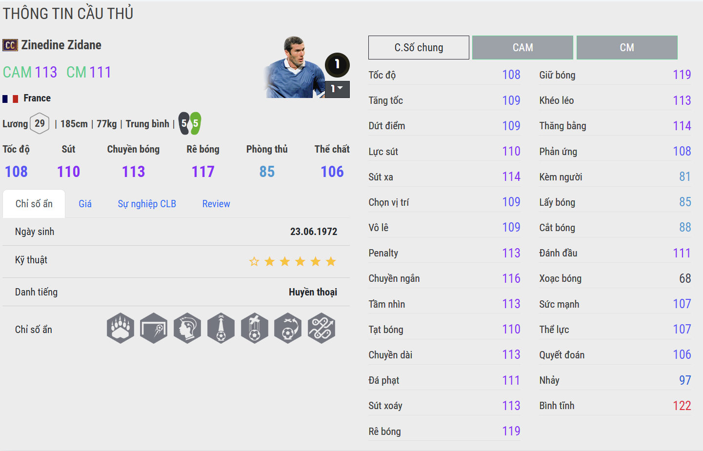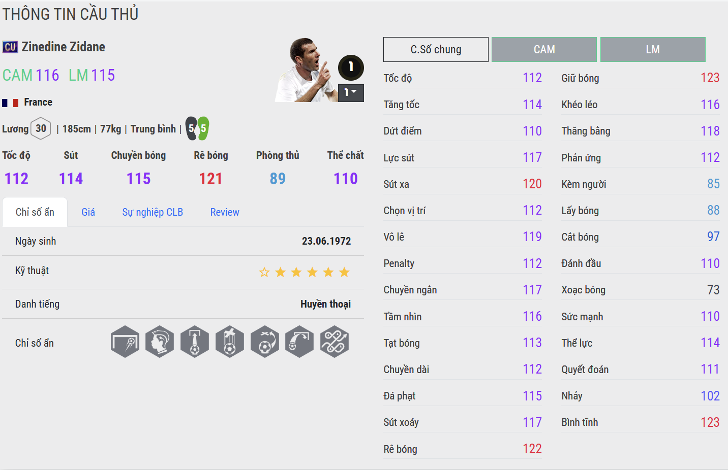 Zidane CC là phiên bản tiệm cận hình ảnh hoàn hảo của “Zizou” trong FC Online. Khả năng giữ bóng, xoay người, chuyền sáng tạo và dứt điểm đều đạt độ hoàn thiện rất cao. Anh kiểm soát nhịp trận đấu theo cách rất riêng: không vội vàng nhưng luôn khiến đối thủ bị cuốn theo. CC đặc biệt mạnh trong vai trò CAM hoặc CM công, nơi Zidane có nhiều không gian để thể hiện đẳng cấp.
