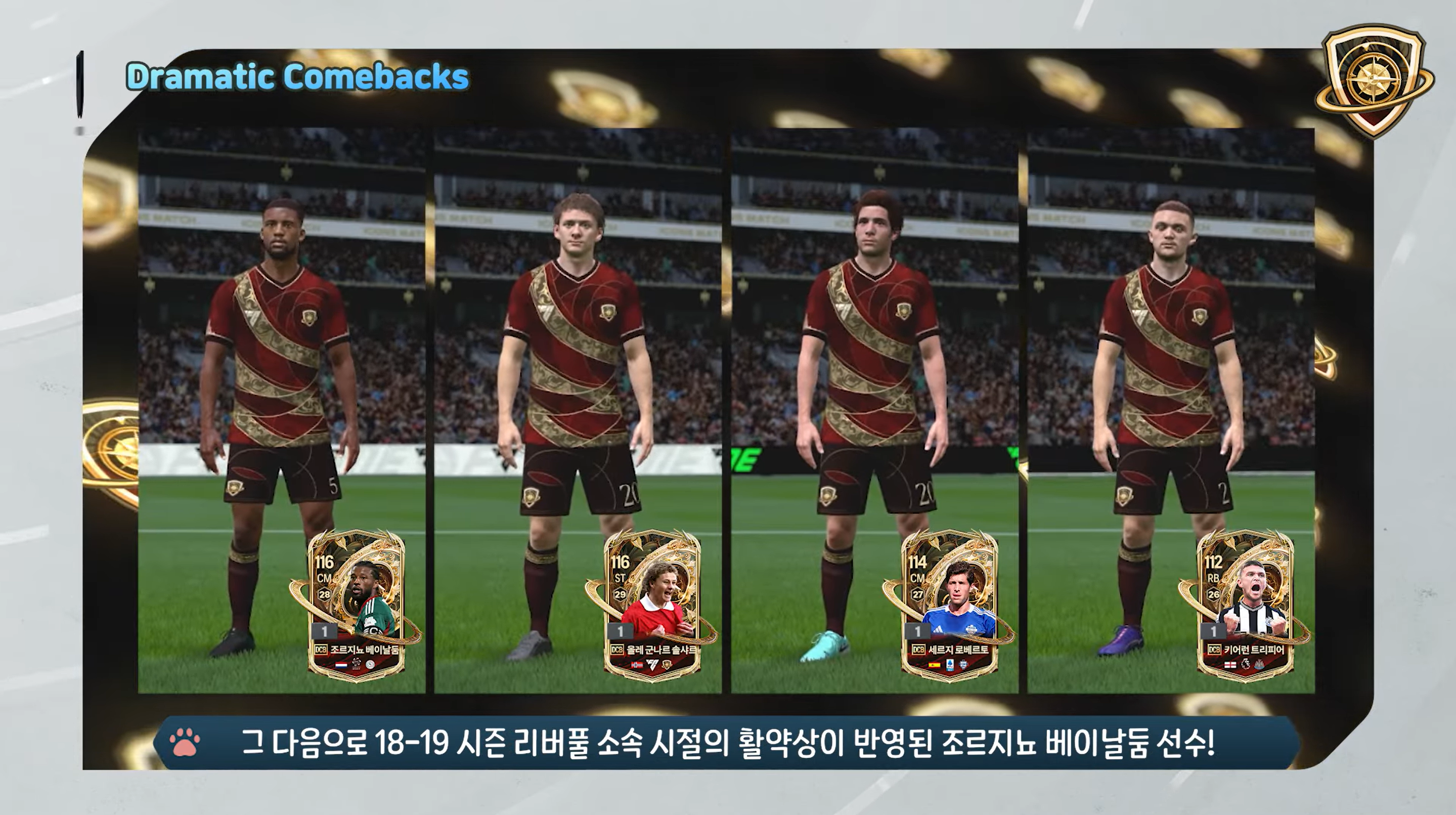 Đây là mùa thẻ được quan tâm hàng đầu tôn vinh những cầu thủ góp công lớn cho những pha lội ngược dòng kinh điển của bóng đá thế giới. Hãy cùng tham khảo qua một vài cái tên trong danh sách ở phía dưới đây :