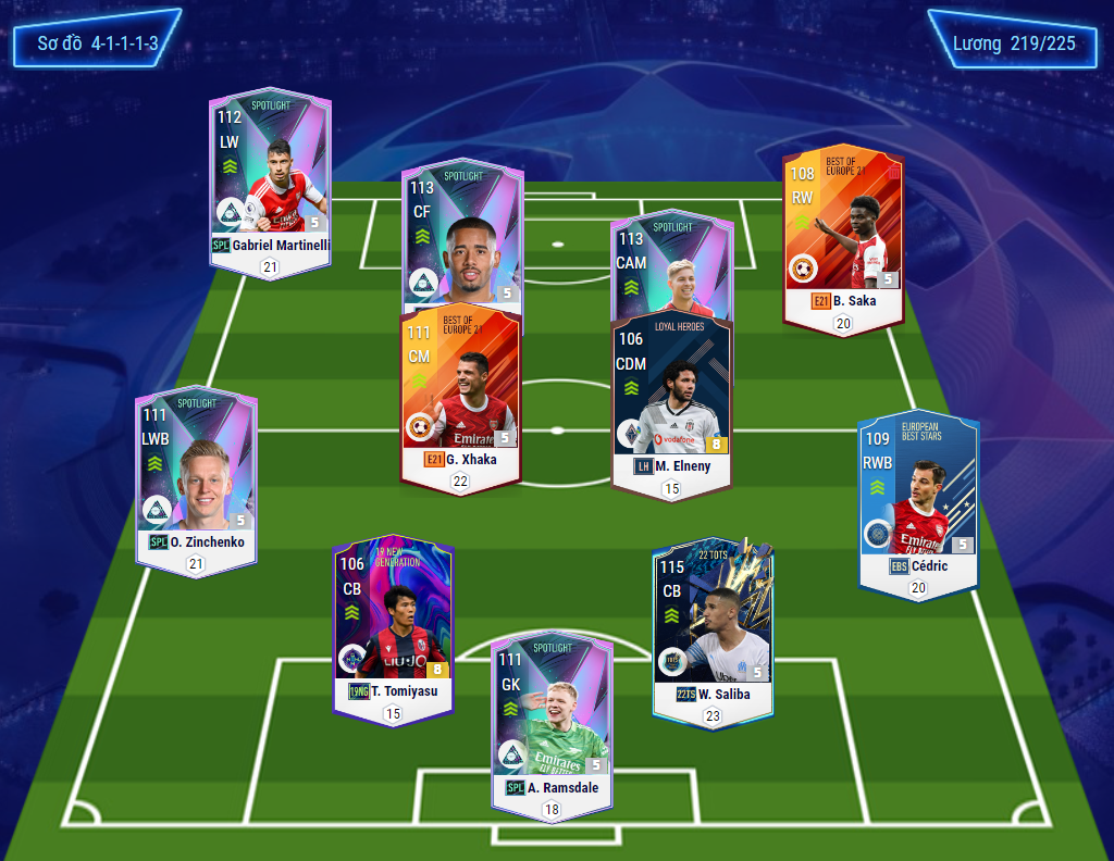 Đây là sơ đồ triển khai của Arsenal 22/23 trong FO4. Với việc không có một tiền đạo cắm chính thức, Gabriel Jesus đóng vai trò một tiền đạo ảo trong khi Martinelli và Saka là hai mũi khoan từ hai biên. Ở hàng phòng ngự là sự xuất hiện của Saliba đang bay cực cao và một Tomiyasu với hai chân 5/5, có chiều cao và thể hình cực ổn.
