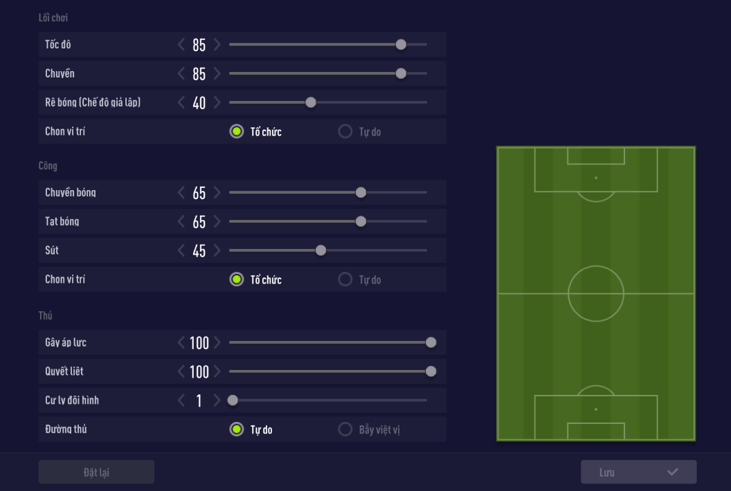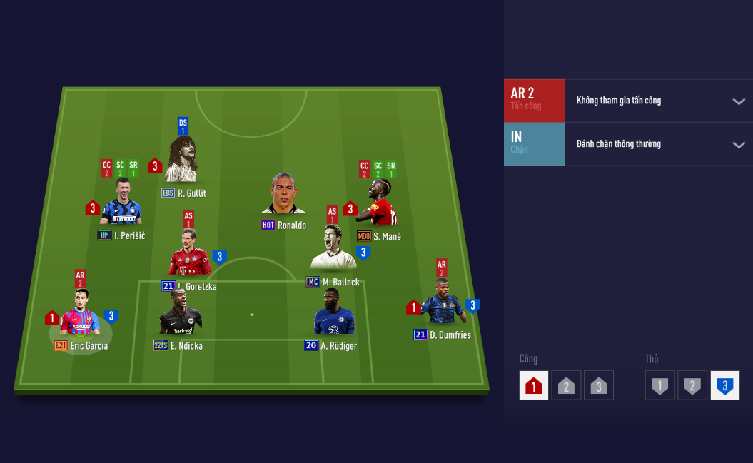 Ngoài ra khi phòng thủ, bạn có thể thiết lập cho đội hình lập tức chuyển về thế trận lùi sâu nhu sau