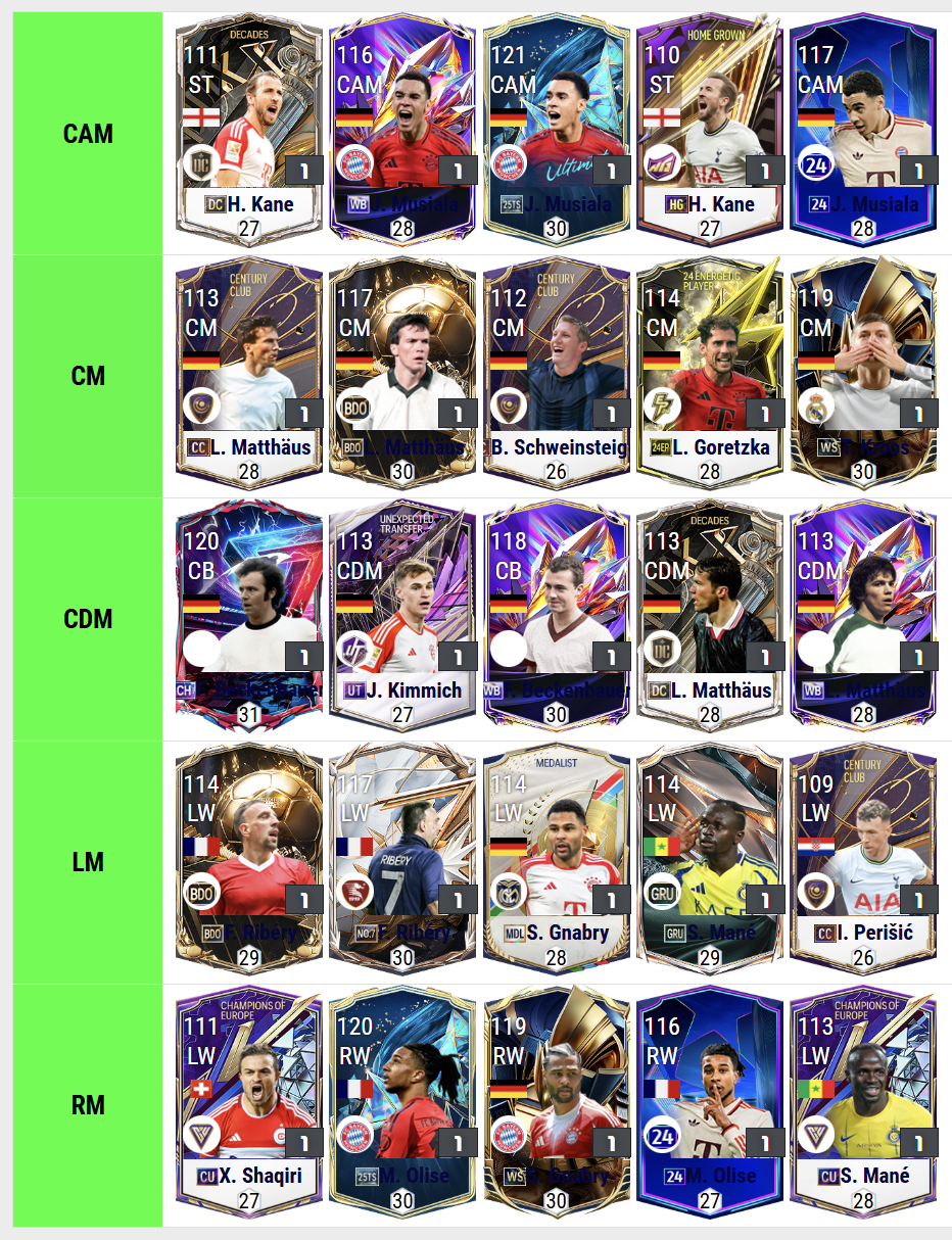 Trong FC Online, tuyến tiền vệ của Bayern Munich luôn được xem là trái tim của cỗ máy đỏ xứ Bavaria – nơi hội tụ sức mạnh, kỷ luật và sự chính xác đến hoàn hảo. Những tiền vệ của “Hùm xám” không chỉ sở hữu nền tảng thể lực sung mãn, khả năng kiểm soát bóng vượt trội mà còn mang tư duy chiến thuật sắc bén, giúp Bayern luôn duy trì thế chủ động trong mọi trận đấu.