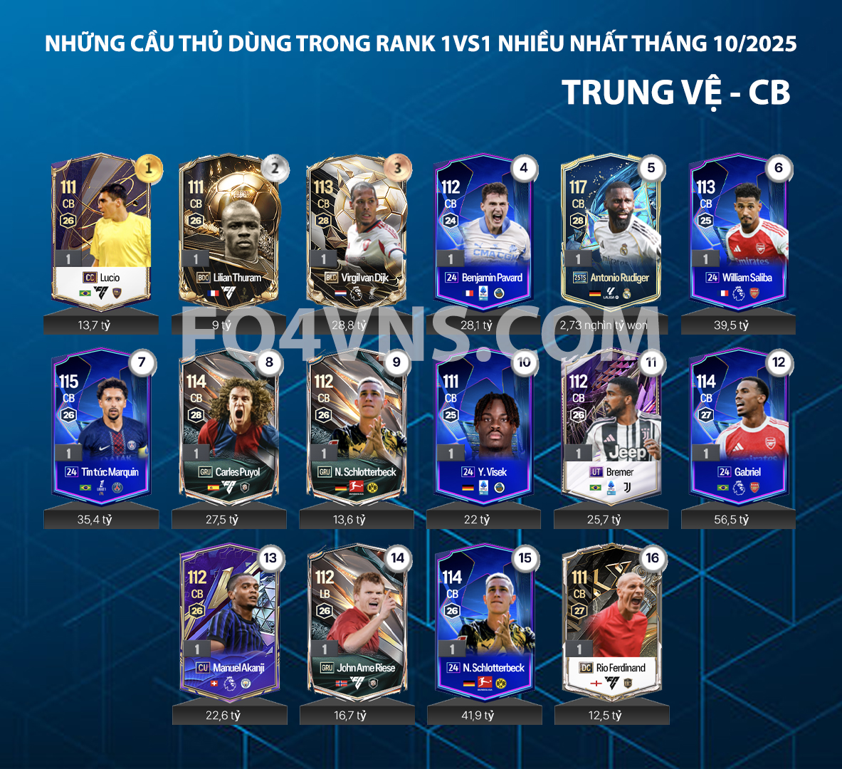 Trong FC Online, vị trí phòng ngự là nền tảng vững chắc giúp đội hình duy trì sự cân bằng và kiểm soát thế trận. Đây là nơi hội tụ của những cầu thủ sở hữu tư duy chiến thuật sắc bén, khả năng đọc tình huống tốt cùng sức mạnh trong tranh chấp.
