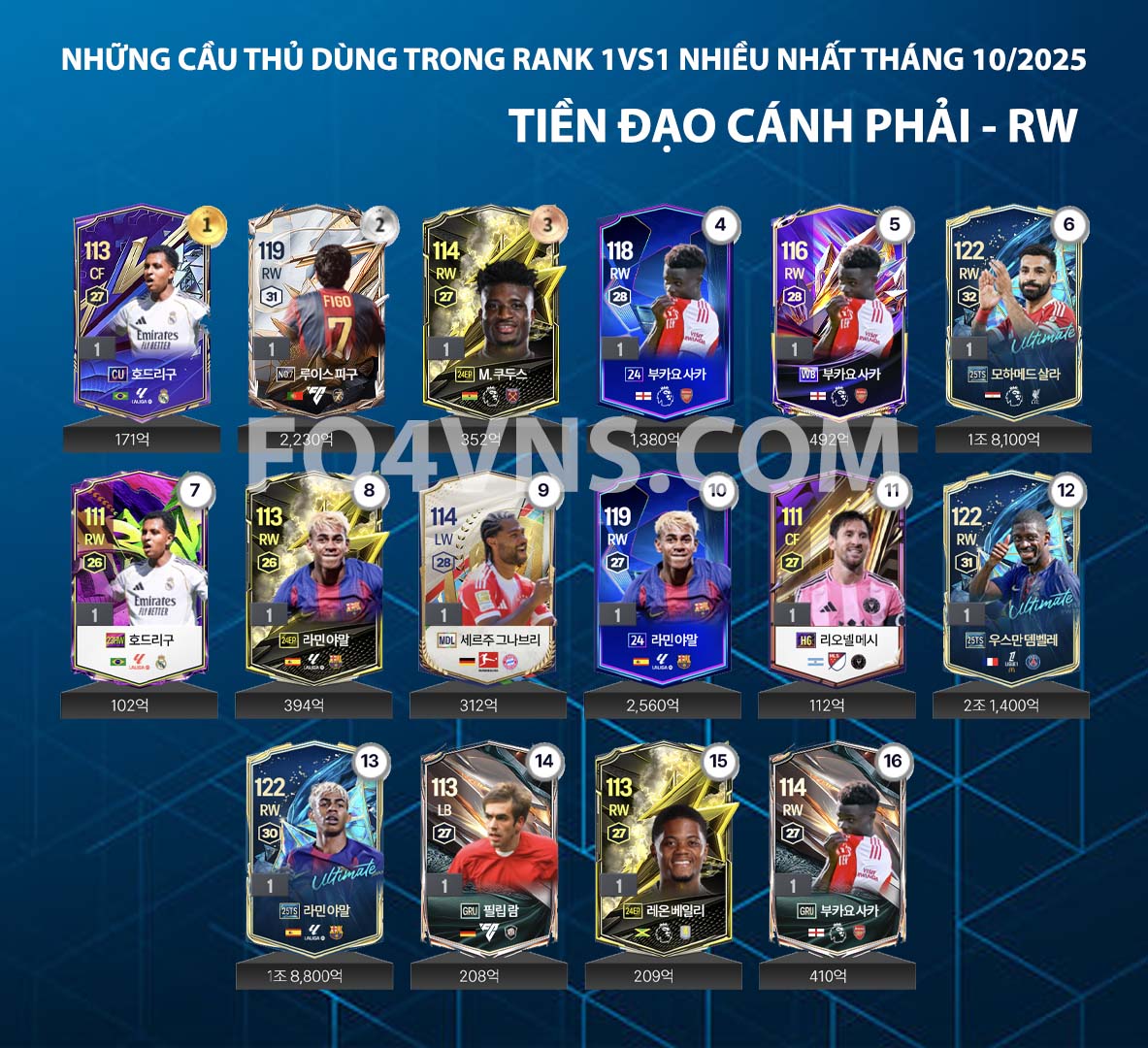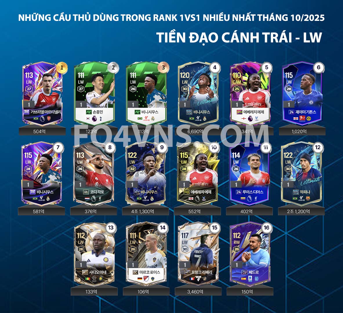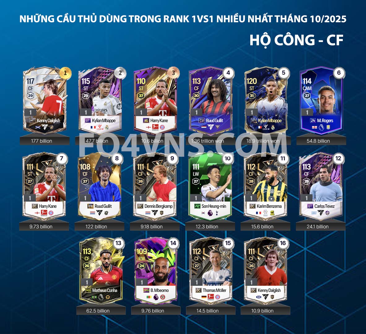 CF (Centre Forward) lại mang thiên hướng linh hoạt hơn – vừa biết lùi sâu liên kết lối chơi, vừa sẵn sàng băng lên khi có cơ hội, là cầu nối giữa tuyến giữa và hàng công. Trong khi đó, hai biên LW (Left Winger) và RW (Right Winger) là những mũi khoan tốc độ, thường xuyên tạo đột biến bằng những pha bứt tốc, rê bóng kỹ thuật và căng ngang chính xác.