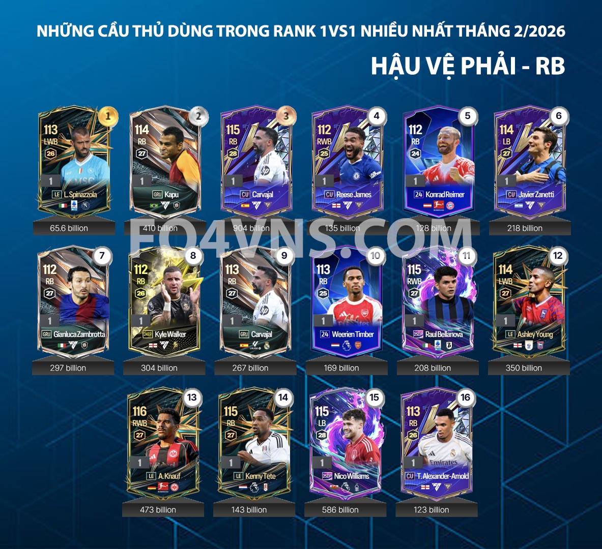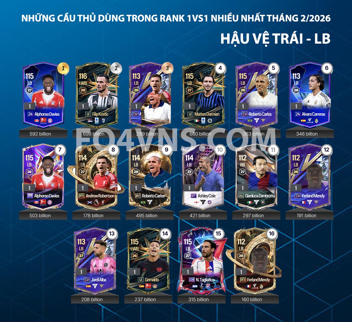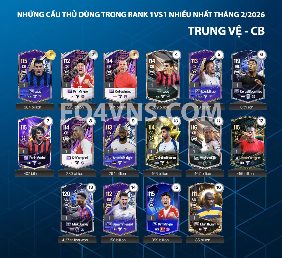 Trung vệ (CB) đóng vai trò chốt chặn then chốt. Họ cần thể hình tốt, khả năng tì đè mạnh mẽ và AI chọn vị trí thông minh để hóa giải các pha chọc khe hoặc bóng bổng. Một trung vệ chất lượng mang lại cảm giác yên tâm trong những tình huống 1vs1 và quyết định rất nhiều đến độ an toàn của hệ thống phòng ngự. Hậu vệ cánh (LB/RB) lại thiên về sự cơ động. Ngoài nhiệm vụ theo kèm và cắt bóng, họ còn tham gia hỗ trợ tấn công, chồng biên và tạo chiều rộng cho đội hình. Tốc độ, thể lực và khả năng tạt bóng là yếu tố quan trọng để phát huy trọn vẹn vai trò này.