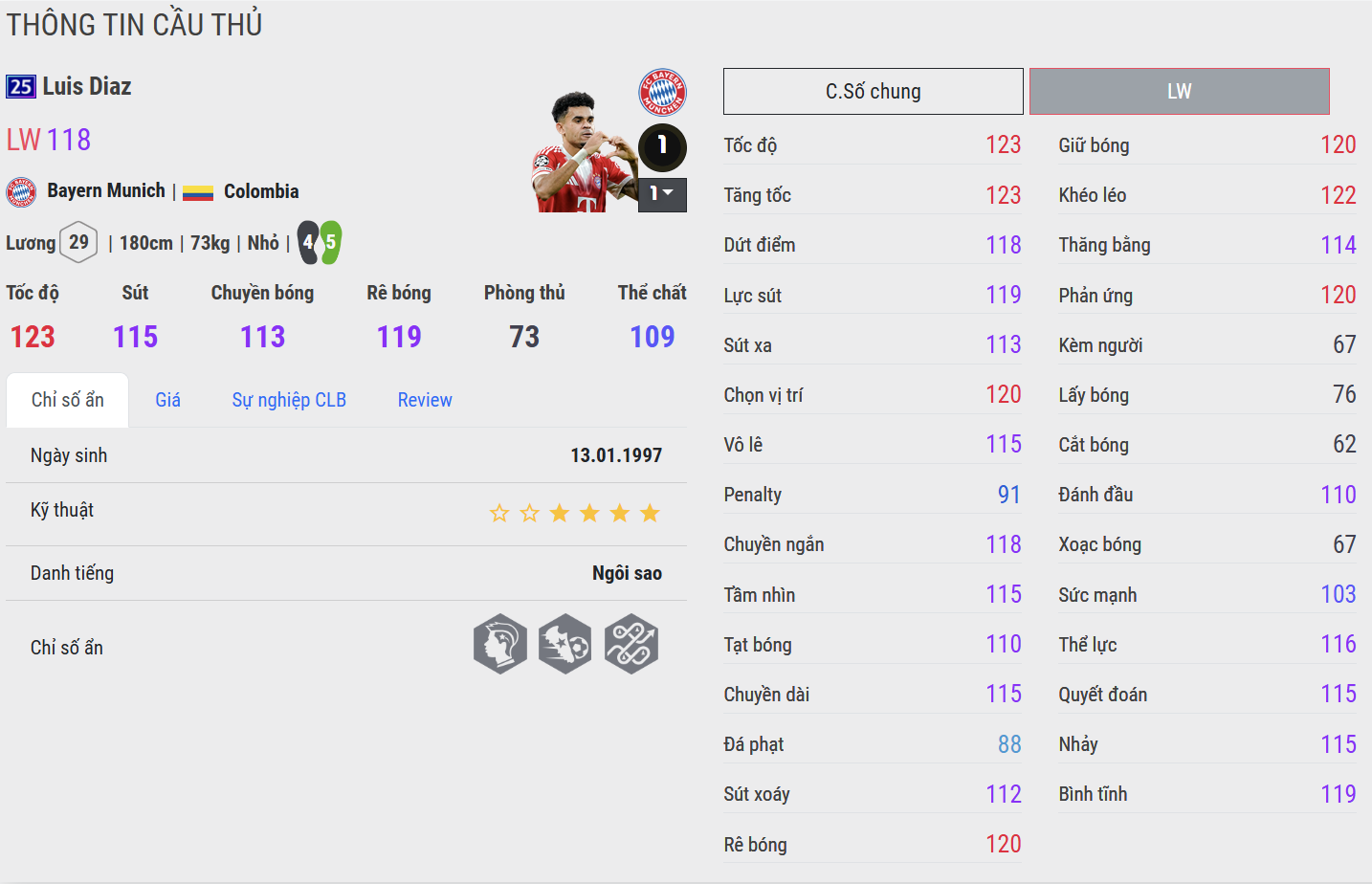 Luis Díaz là mẫu cầu thủ chạy cánh giàu tốc độ và đột biến của bóng đá Nam Mỹ. Trong màu áo Liverpool F.C., anh nổi bật với lối chơi trực diện, khả năng rê bóng táo bạo và tinh thần thi đấu đầy năng lượng.