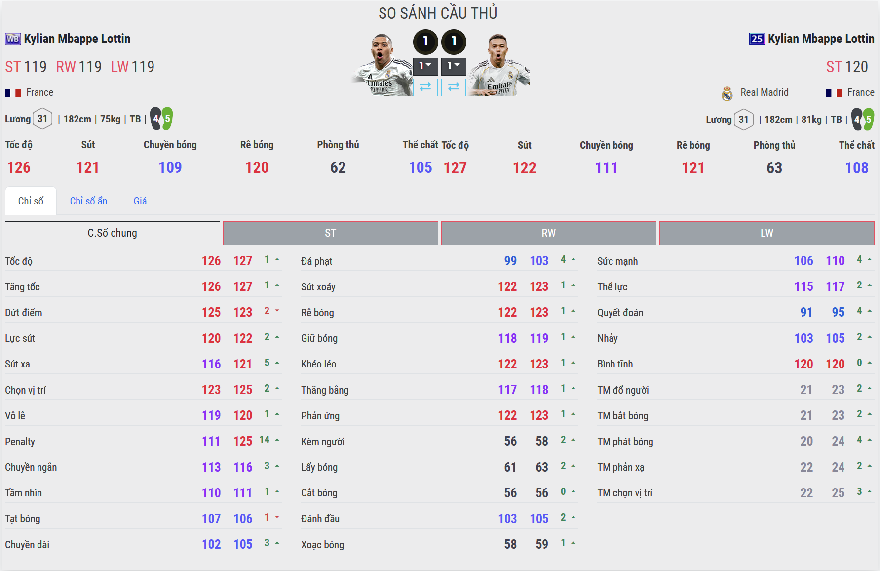 25UCL bứt tốc tốt hơn, WB nhanh nhưng ổn định hơn khi có bóng. WB vẫn giữ đúng “DNA Mbappé”: tăng tốc cực nhanh và dễ dàng bỏ lại hậu vệ phía sau khi có khoảng trống. Tuy nhiên, tốc độ của phiên bản này thiên về sự mượt mà và kiểm soát tốt khi đang rê bóng. 25UCL lại mang đến cảm giác bùng nổ hơn hẳn. Những pha nhấn ga đầu tiên gần như tạo ra khoảng cách ngay lập tức với hậu vệ. Trong các tình huống phản công hoặc đua tốc dài, 25UCL cho cảm giác “thoát người” nhanh hơn rõ rệt.