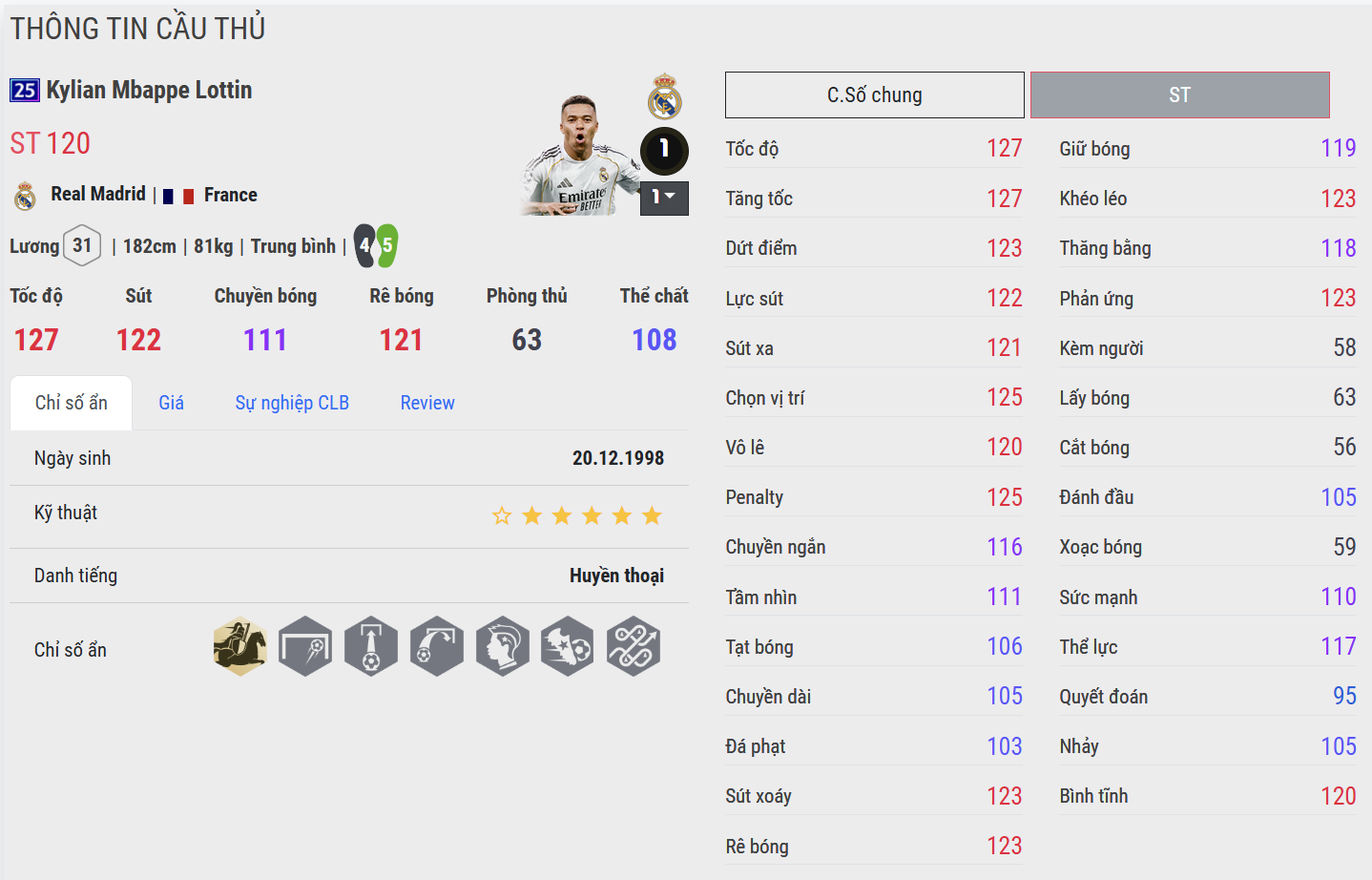 Chỉ cần một pha tăng tốc, một nhịp xử lý gọn gàng hay cú dứt điểm lạnh lùng, anh có thể thay đổi cục diện trận đấu. Sự kết hợp giữa tốc độ, kỹ thuật và bản lĩnh sân cỏ giúp Mbappé trở thành biểu tượng của thế hệ siêu sao mới trong bóng đá thế giới.