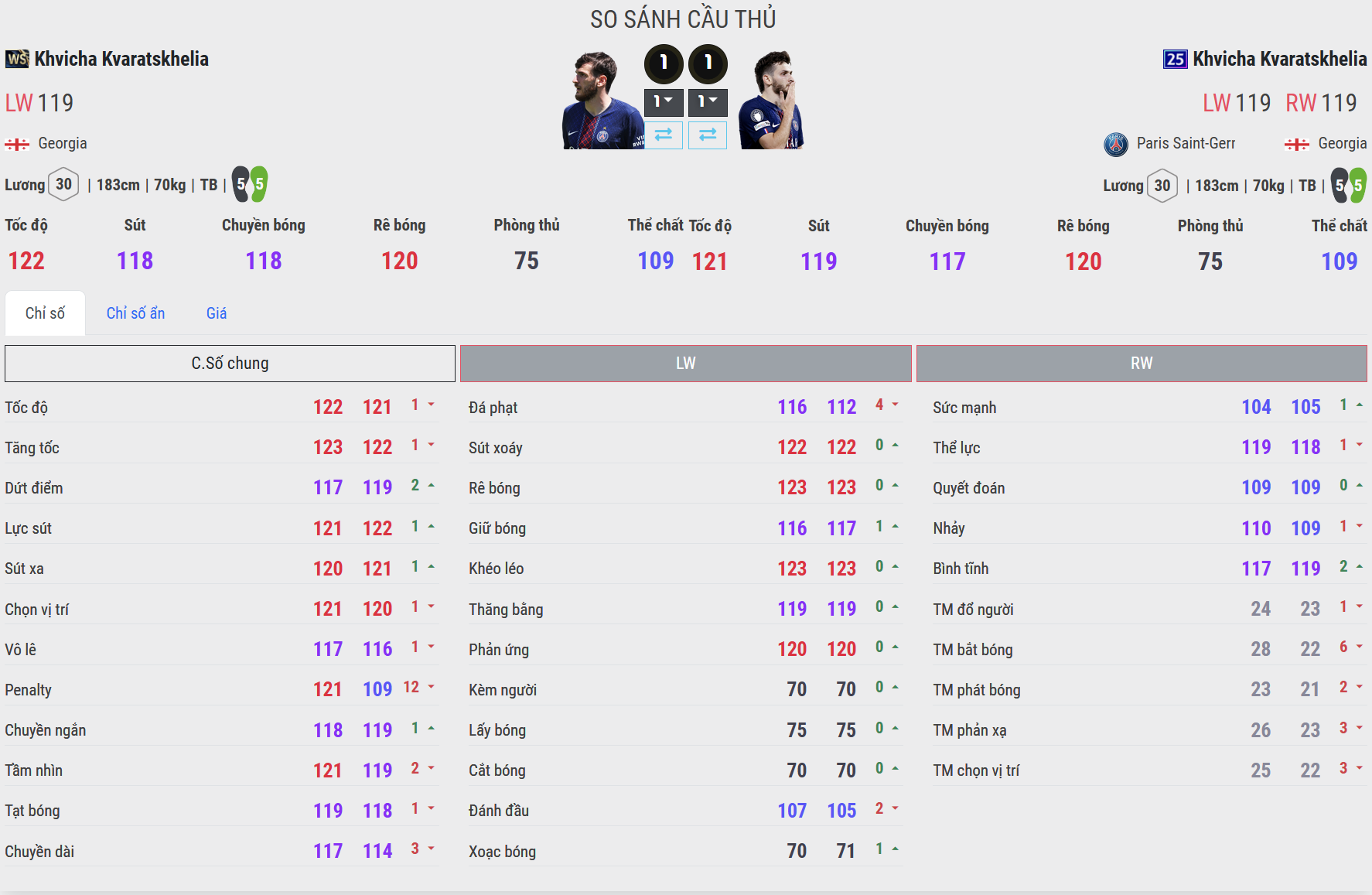 WS bứt tốc sắc hơn, 25UCL nhanh nhưng thiên về nhịp độ kiểm soát. 25UCL mang lại cảm giác Kvaratskhelia khá nhanh khi khai thác hành lang trái. Những pha tăng tốc trong khoảng ngắn đủ để vượt qua hậu vệ biên, nhưng đôi khi chưa thật sự tạo ra khoảng cách lớn. WS cải thiện rõ rệt bước tăng tốc đầu tiên. Khi nhận bóng và lao thẳng vào khoảng trống, WS bứt lên rất gọn và dễ dàng kéo giãn hàng thủ đối phương. Trong các pha phản công hoặc đua tốc dọc biên, WS hiệu quả hơn.
