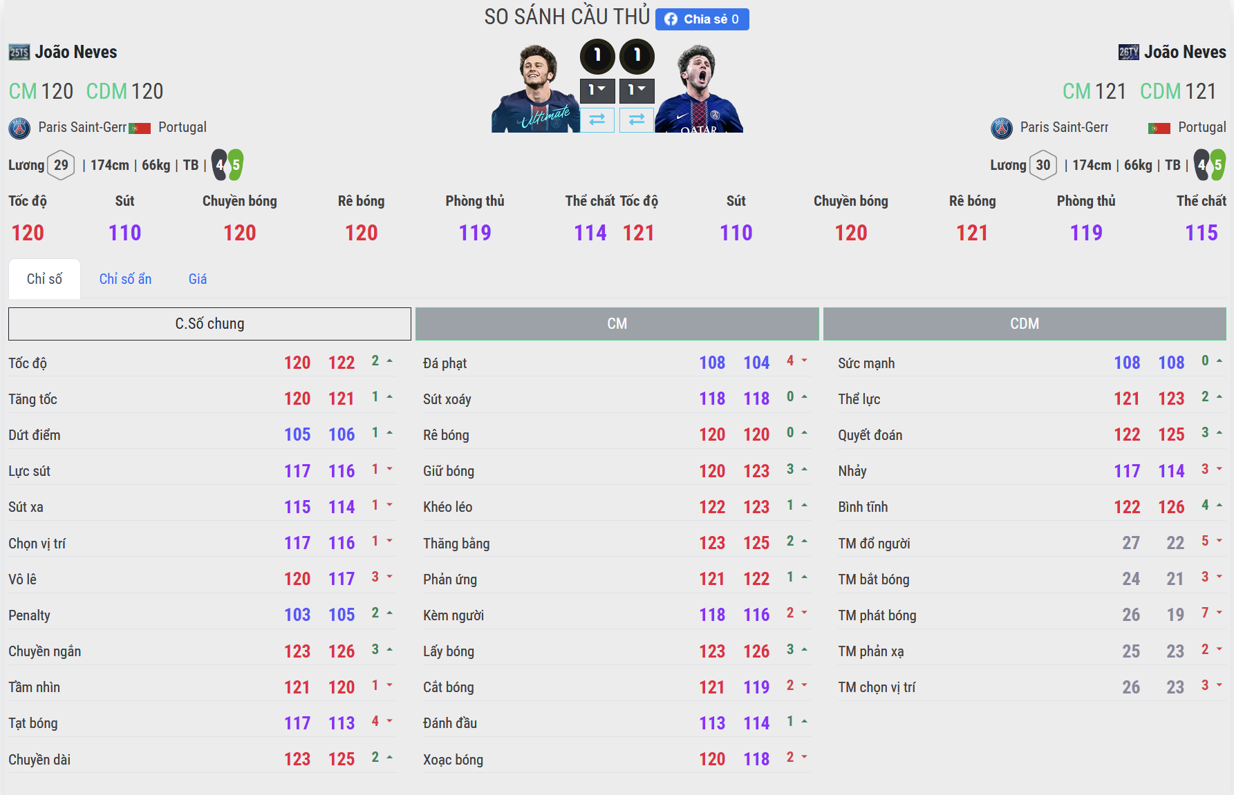 So sánh hai mùa giải 26TY và 25TS của Raphinha trong FC Online