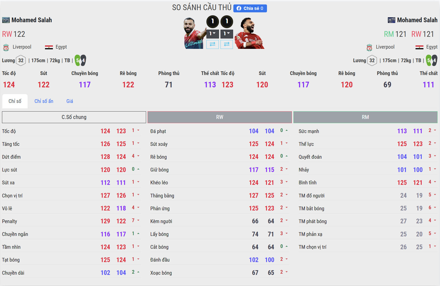 26TY bứt tốc gắt và chuyển hướng nhanh hơn, 25TS nhanh nhưng chưa đủ áp đảo. 25TS vẫn rất nhanh trong các pha bám biên và phản công. Anh có thể vượt qua hậu vệ nếu có khoảng trống. 26TY nâng cấp rõ rệt bước tăng tốc đầu và khả năng đổi hướng khi đang chạy. Những pha cắt vào trong ở tốc độ cao trở nên cực kỳ khó bắt, giúp Salah tạo khoảng trống dứt điểm dễ dàng hơn.