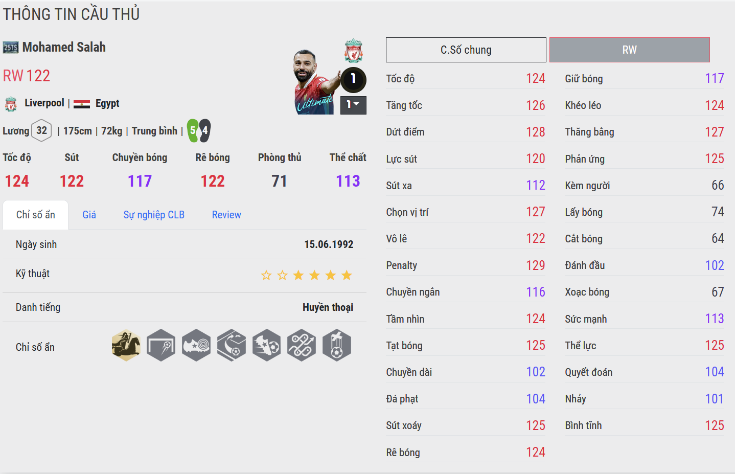 Mohamed Salah là mẫu cầu thủ chạy cánh phải mang đậm chất sát thủ – nơi tốc độ, sự sắc bén và khả năng dứt điểm tạo nên một mối đe dọa thường trực với mọi hàng thủ. Trong màu áo Liverpool F.C., anh là trung tâm của các phương án tấn công, luôn sẵn sàng tạo ra khác biệt chỉ trong một khoảnh khắc.