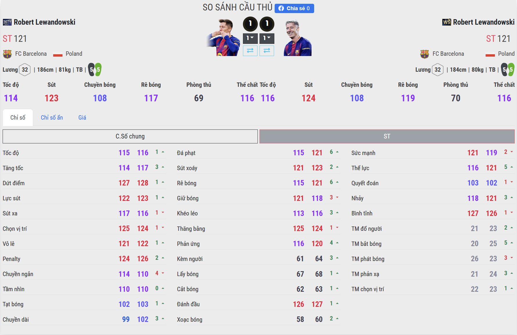 So sánh hai mùa giải 26TY và 25TS của Raphinha trong FC Online