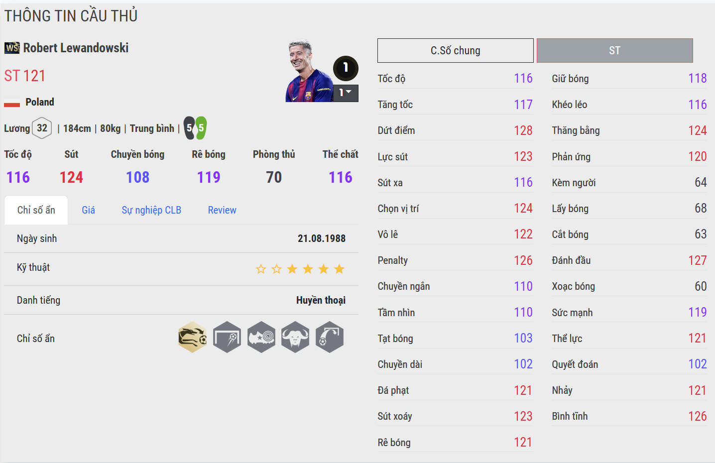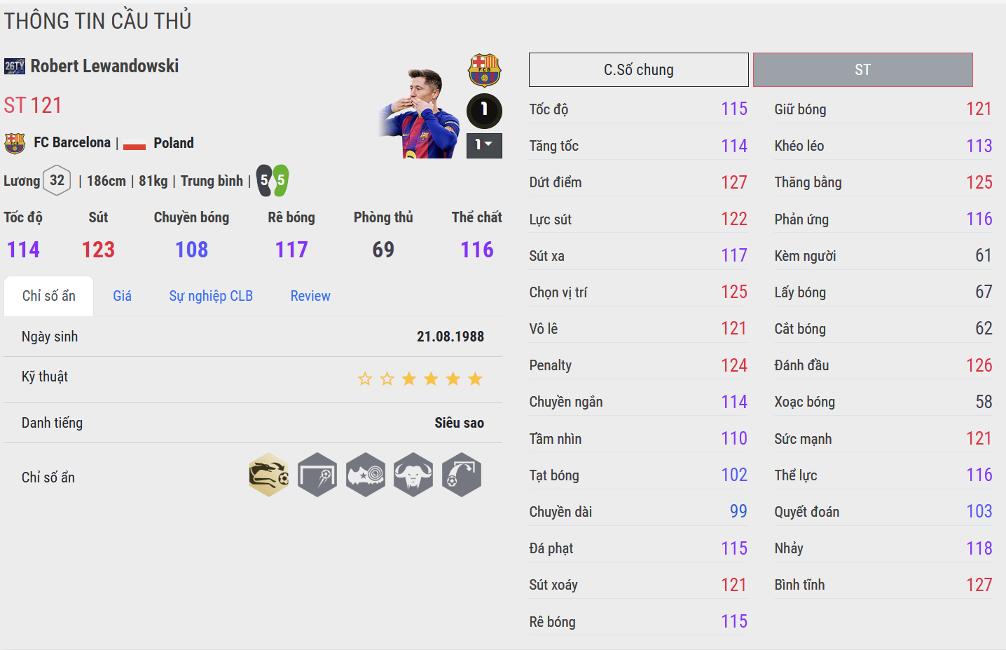 26TY vượt trội về độ lì, WS đã khỏe nhưng chưa “out meta”. WS đã rất mạnh trong tranh chấp. Lewandowski có thể đè CB, giữ bóng và xoay người dứt điểm hiệu quả. 26TY nâng tầm khả năng tì đè. Cảm giác giữ người, che bóng và trụ lại trước áp lực trở nên cực kỳ khó chịu. Trong các pha va chạm trực diện, anh gần như chiếm ưu thế hoàn toàn.