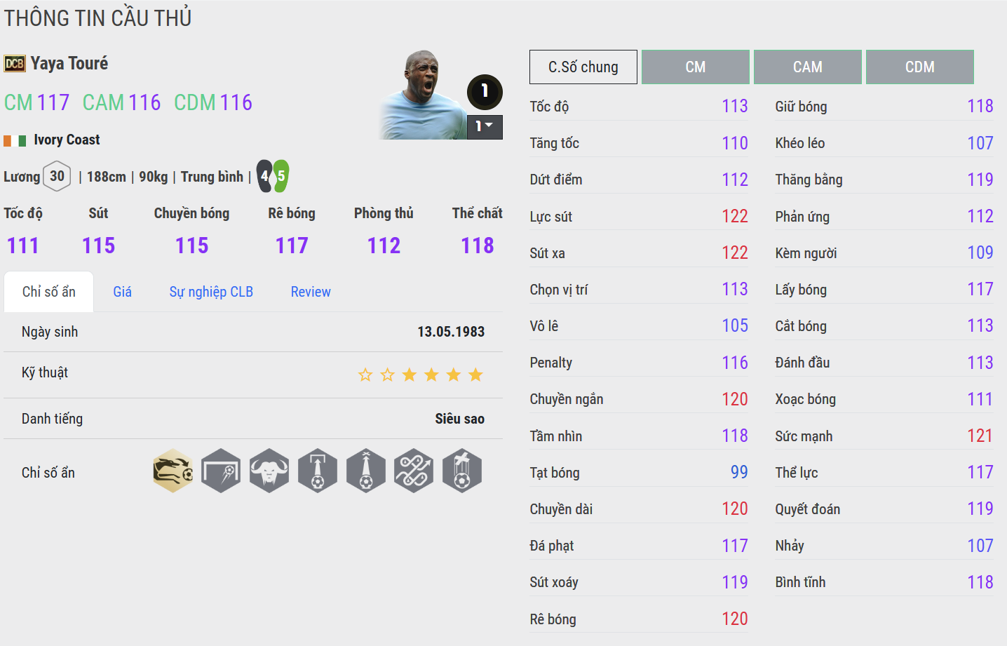 Anh không chỉ là biểu tượng của sức mạnh châu Phi trên bản đồ bóng đá thế giới, mà còn là hình mẫu của một thủ lĩnh âm thầm nhưng đầy uy lực. Trong FC Online, Toure luôn được yêu thích bởi sự cân bằng giữa công và thủ – một “cỗ máy tuyến giữa” thực thụ.